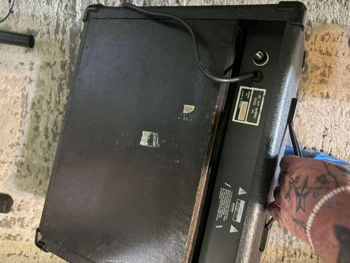 Charvel CH-200B bass amplifier. It is a solid-state combo amp with a 20-watt output and a single 8-inch speaker. It was manufactured in the early to mid-1990s. The amp features a single input, a four-band EQ, an effects loop, and a headphone jack. It is often described as a good practice amp for home use.