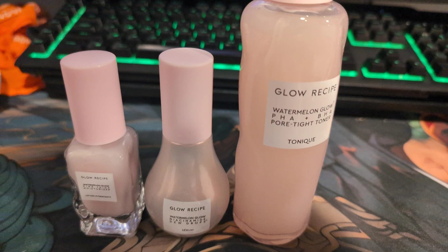 Selling a Glow Recipe Watermelon Glow Icons set! It includes the Watermelon Glow Moisturizer, Watermelon Glow Dew Drops serum, and Watermelon Glow Pore-Tight Toner. A perfect set for glowing skin!