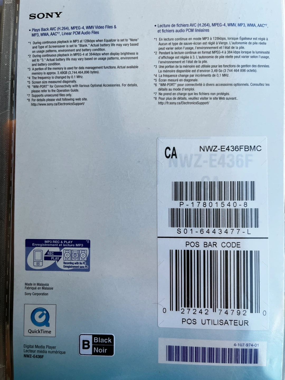 Selling a Sony Walkman NWZ-E436F digital media player in black! It's in great condition and comes in its original packaging. This little device has a long battery life, offering up to 45 hours of music and 8 hours of video playback. It also includes an FM tuner. A perfect music companion for on-the-go!