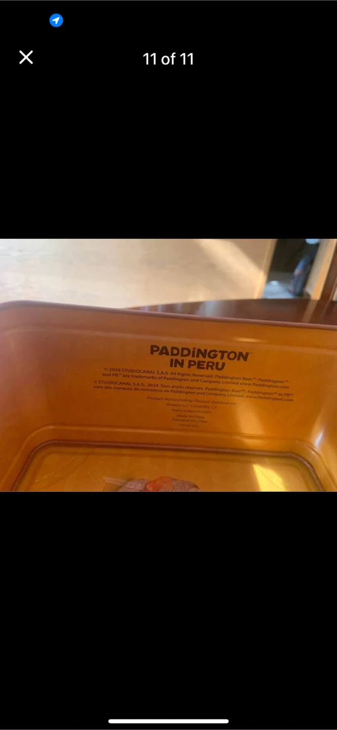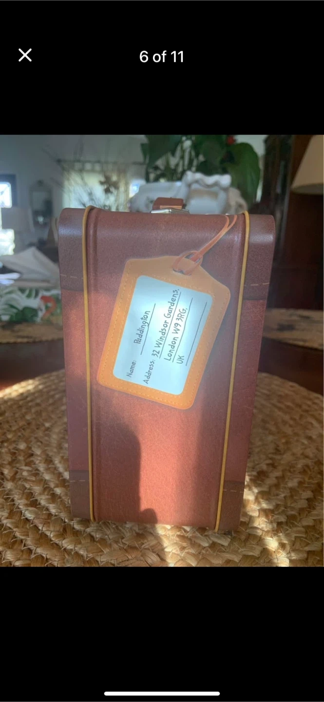 Here's a cute Paddington Bear metal suitcase! It's in great shape and features Paddington on the front and a tag with his address.