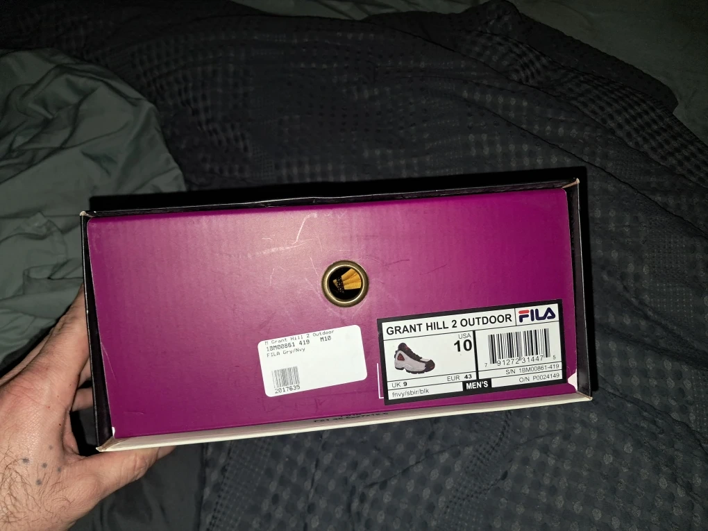 Here are a pair of Fila Grant Hill 2 Outdoor shoes in men's size US 10. They come with the original box!