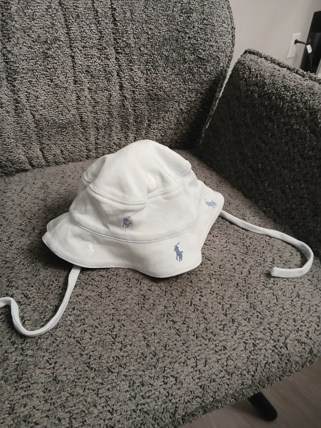 A cute light blue Ralph Lauren baby sun hat! It's in great condition and perfect for keeping your little one protected from the sun. Features the classic Ralph Lauren logo embroidered in blue. Pick up in Scarborough at Markham and Lawrence Ave E