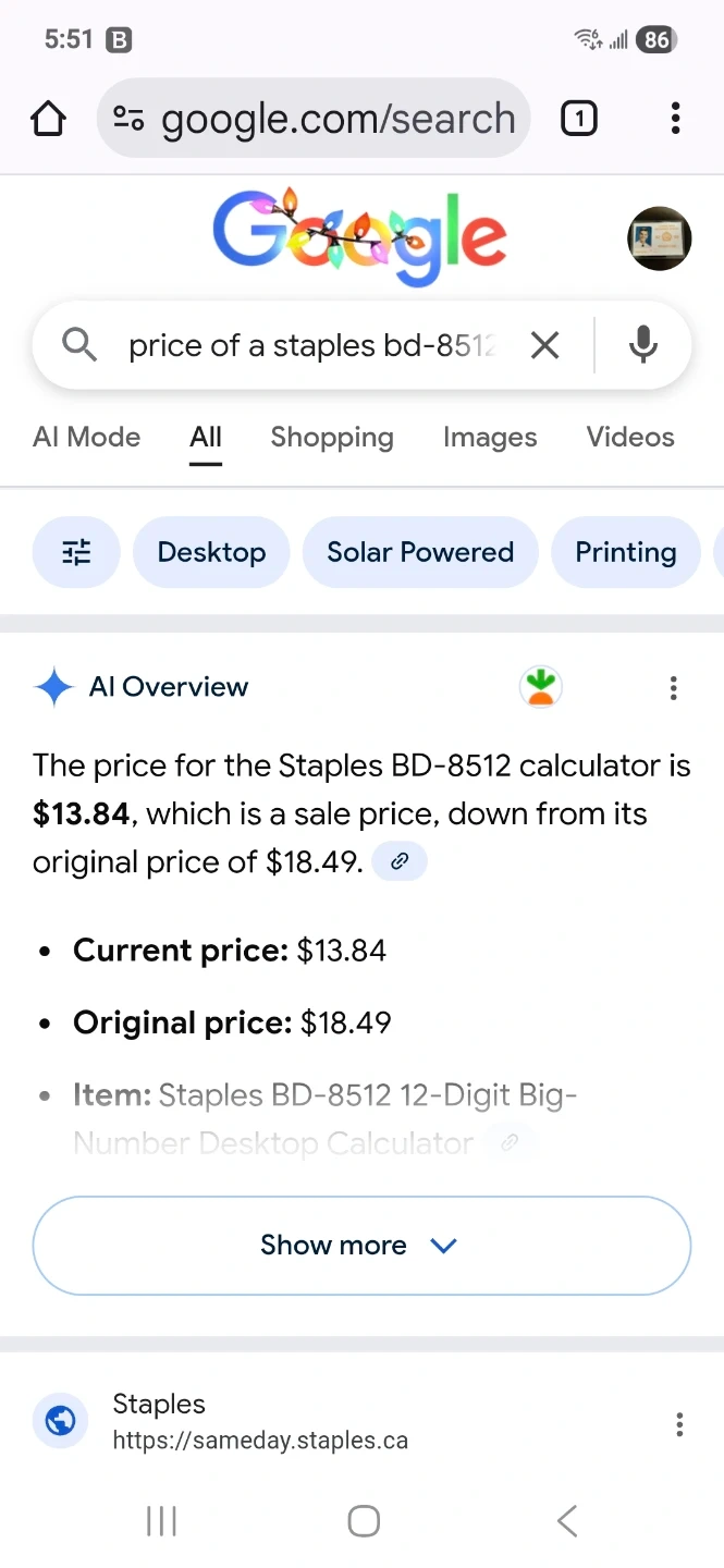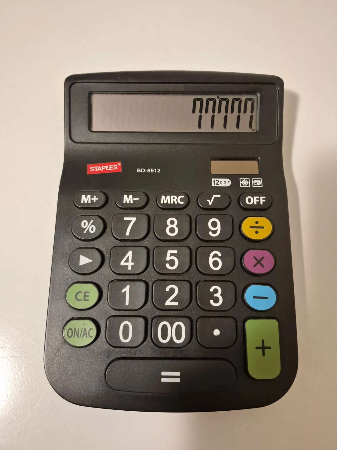 Selling a Staples BD-8512 calculator in great condition! It's a 12-digit calculator that's perfect for home or office use. I saw online that it originally sold for $18.49!! ๐ซ๐งฎ๐๐
