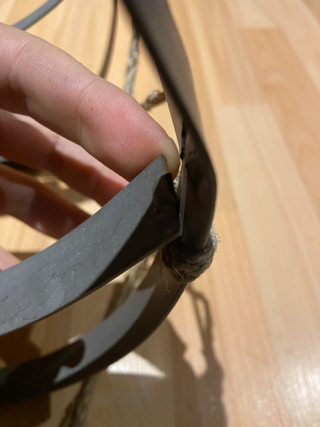 One of the metal curves needs to be welded back