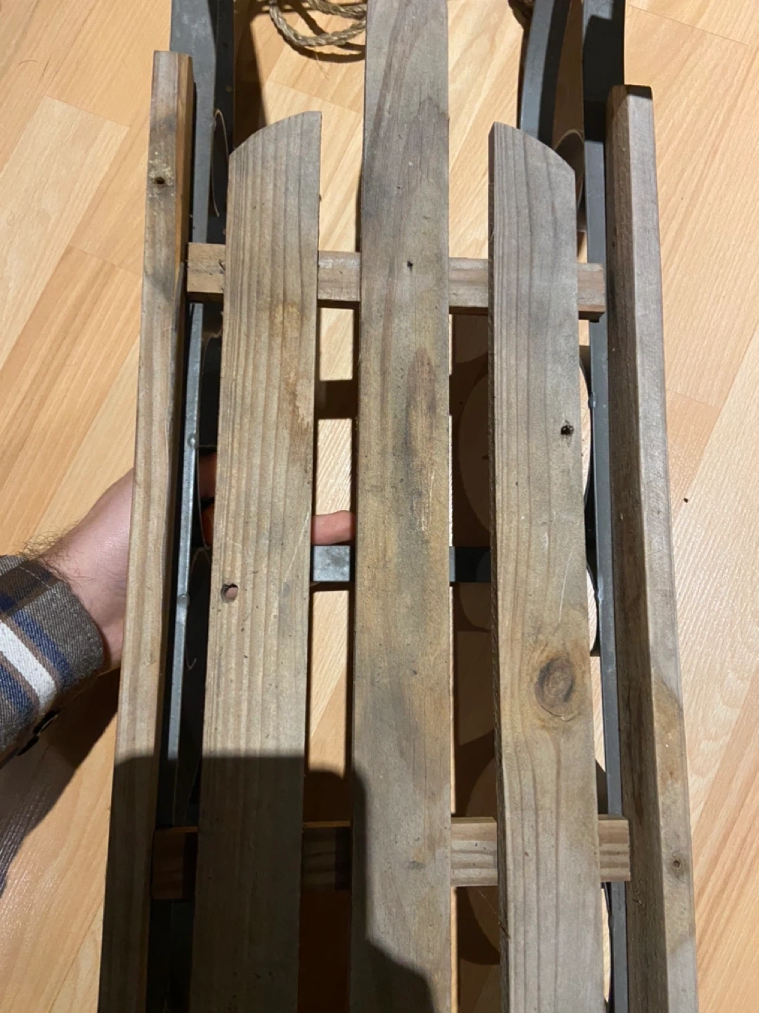 Selling a vintage wooden sled with a metal frame! It's a classic piece that would look great as decor or for some winter fun. The sled measures approximately 23.5 inches in length and 8β inches in width.