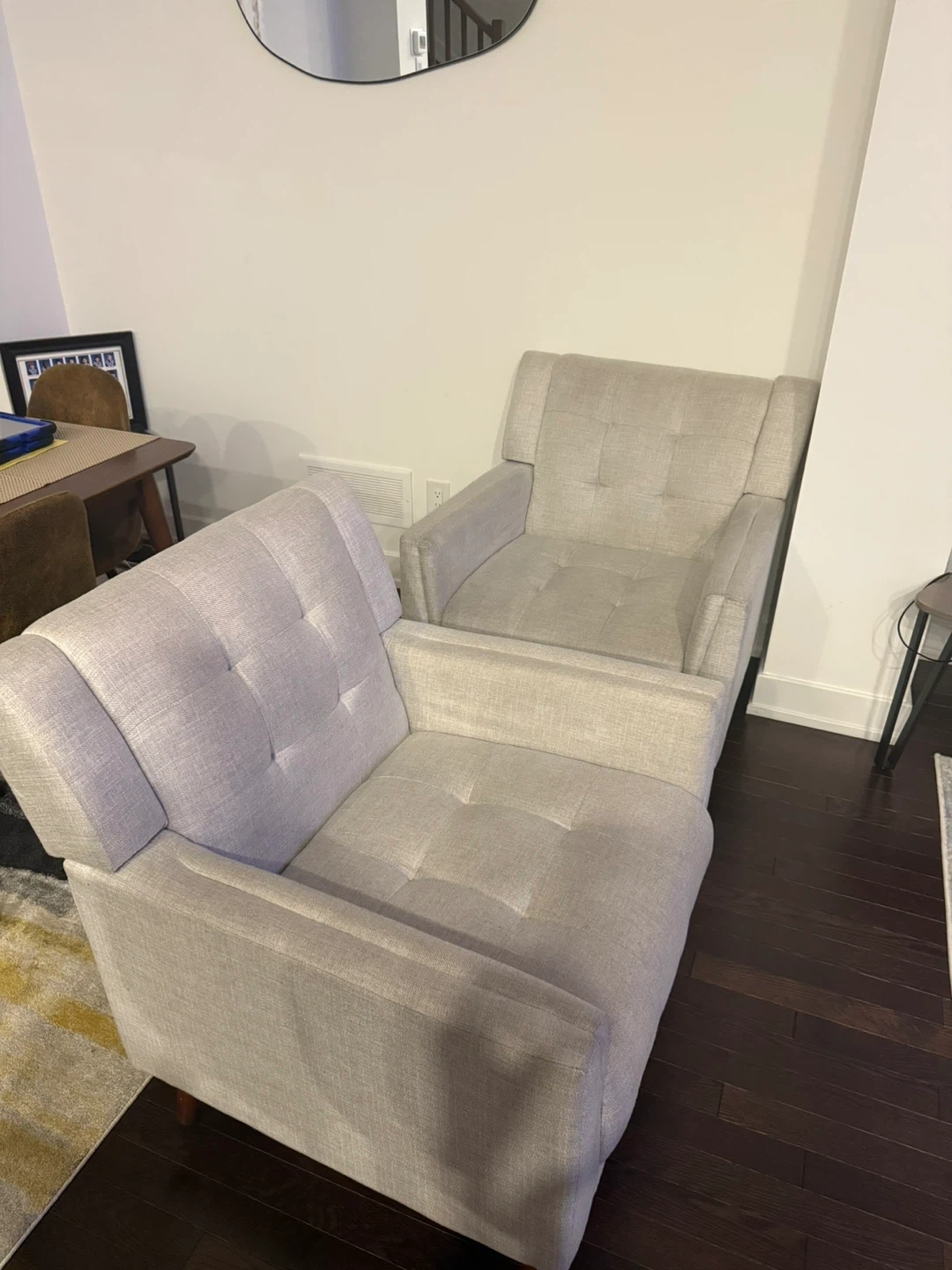 Buy & SellTwo Beige ArmchairsTwo Beige Armchairs$237Selling two armchairs in a neutral beige colour. They're in great condition and would look lovely in any living spaceConditionGoodWHERE TO MEETCheck LocationView MapSELLERverifiedAhemaLeitrim650 reviews0 chats·0 favorites·5 viewsSEND CHAT TO SELLERHi Ahema! I’m interested in your listing.Hi Ahema! I’m interested in your listing.Get the Karrot app to chatSign In to chat