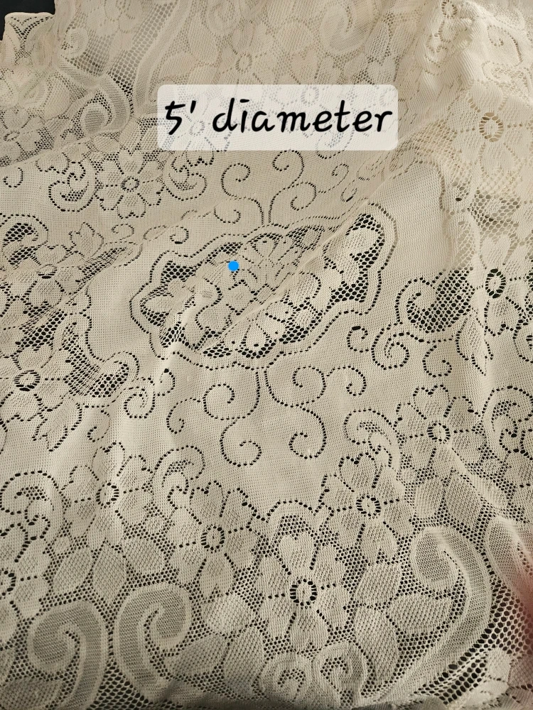 Buy & SellLace Tablecloth - 5' DiameterLace Tablecloth - 5' Diameter$90Selling a beautiful lace tablecloth. It's about 5 feet in diameter and would look lovely for any occasion!WHERE TO MEETCheck LocationView MapSELLER509383University00 reviews0 chats·0 favorites·3 views