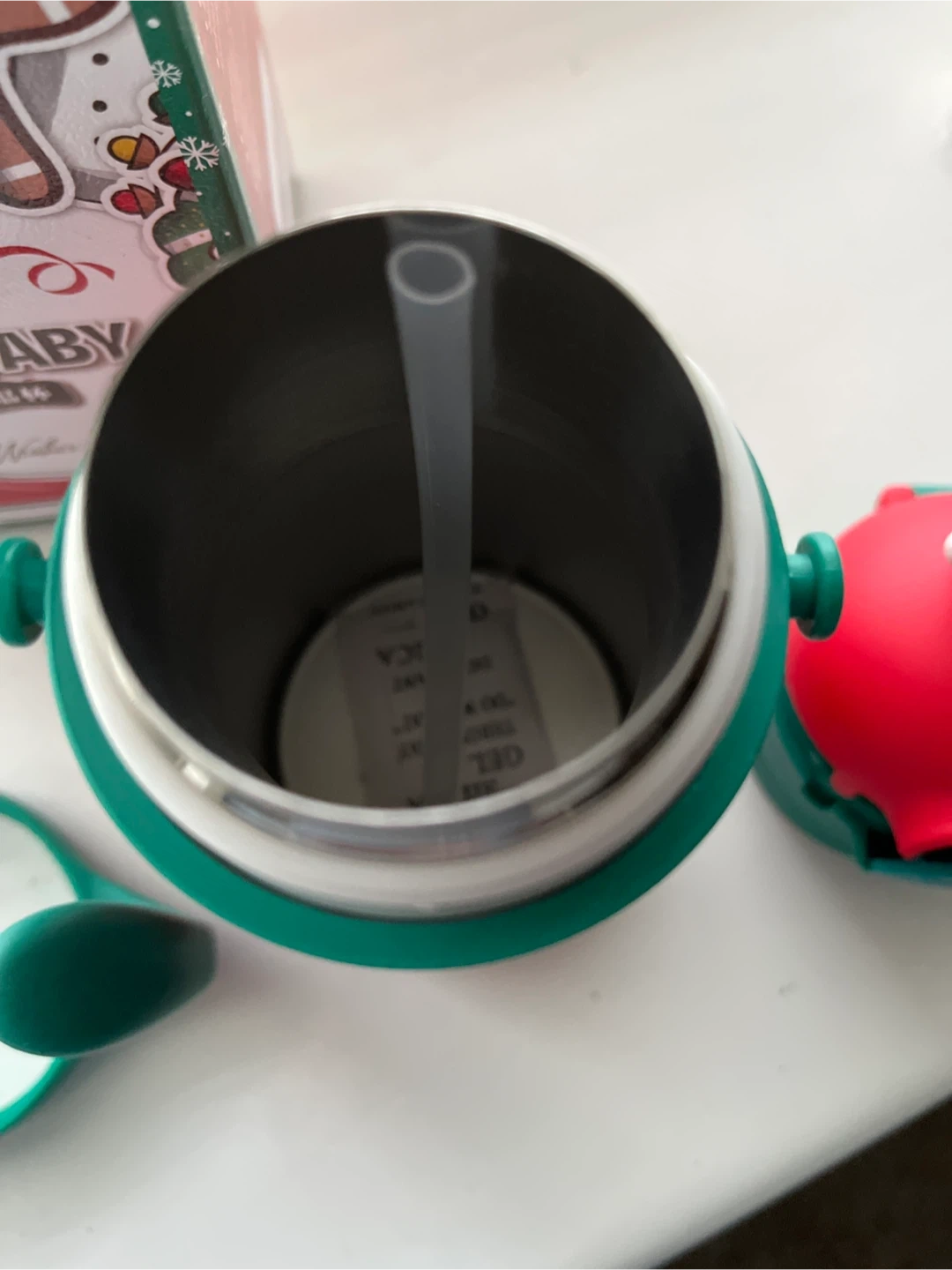 Brand new Love Baby kids insulated cup, still in its original box! It's red and green with a cute snowman design, perfect for the holiday season. Comes with all the original components and accessories.