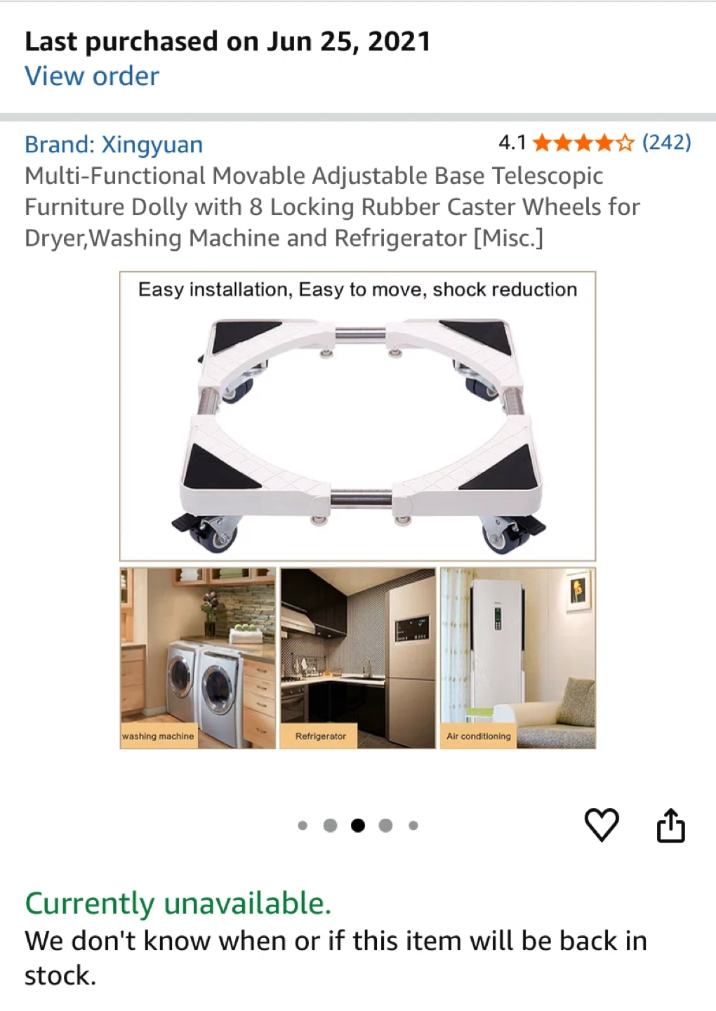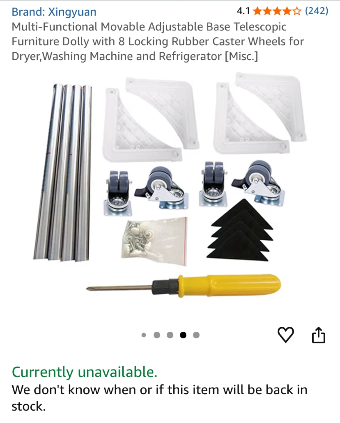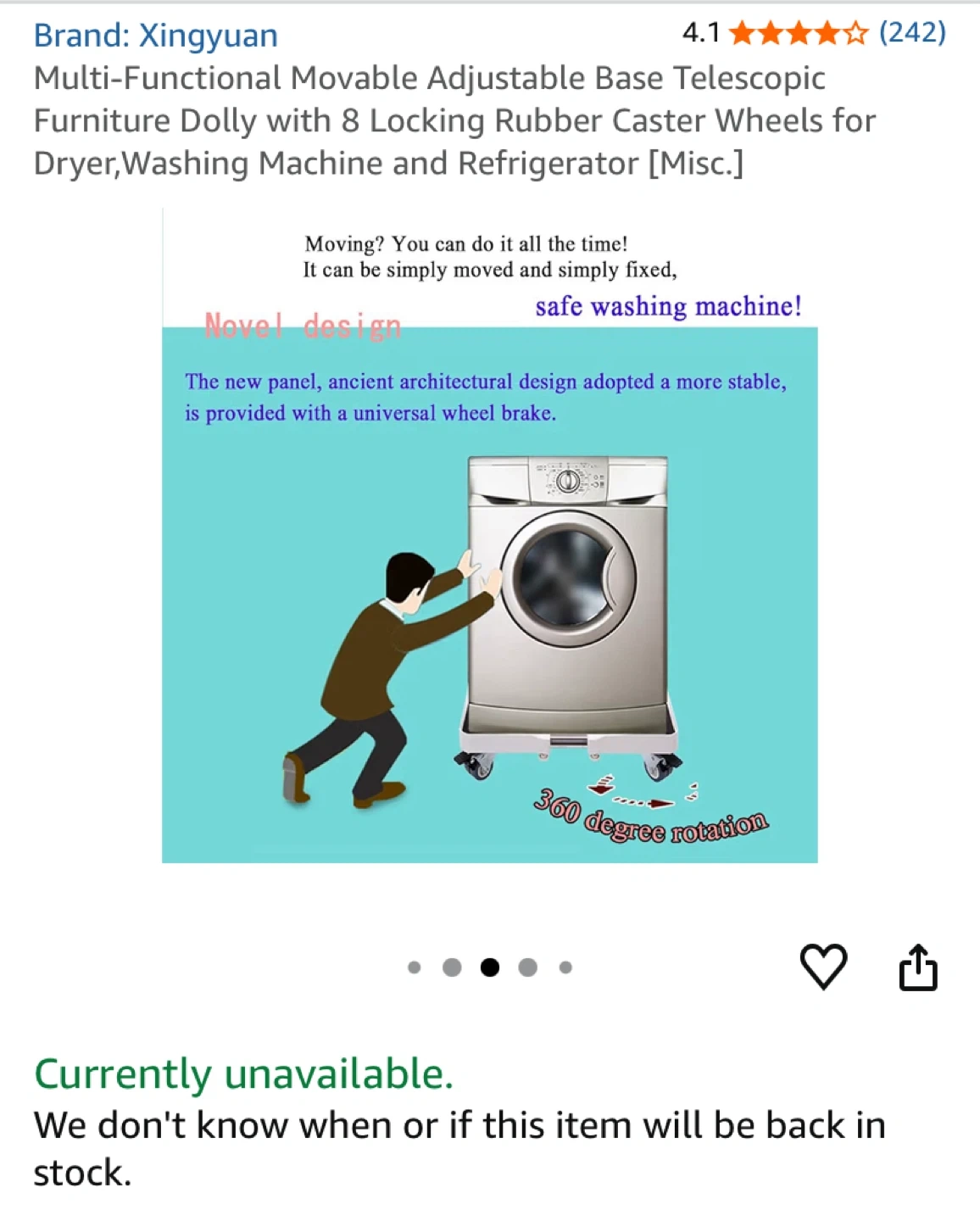 Selling a Xingyuan multi-functional movable adjustable base telescopic furniture dolly. It has 8 locking rubber caster wheels for a dryer, washing machine, and refrigerator. It's easy to install and move with shock reduction.