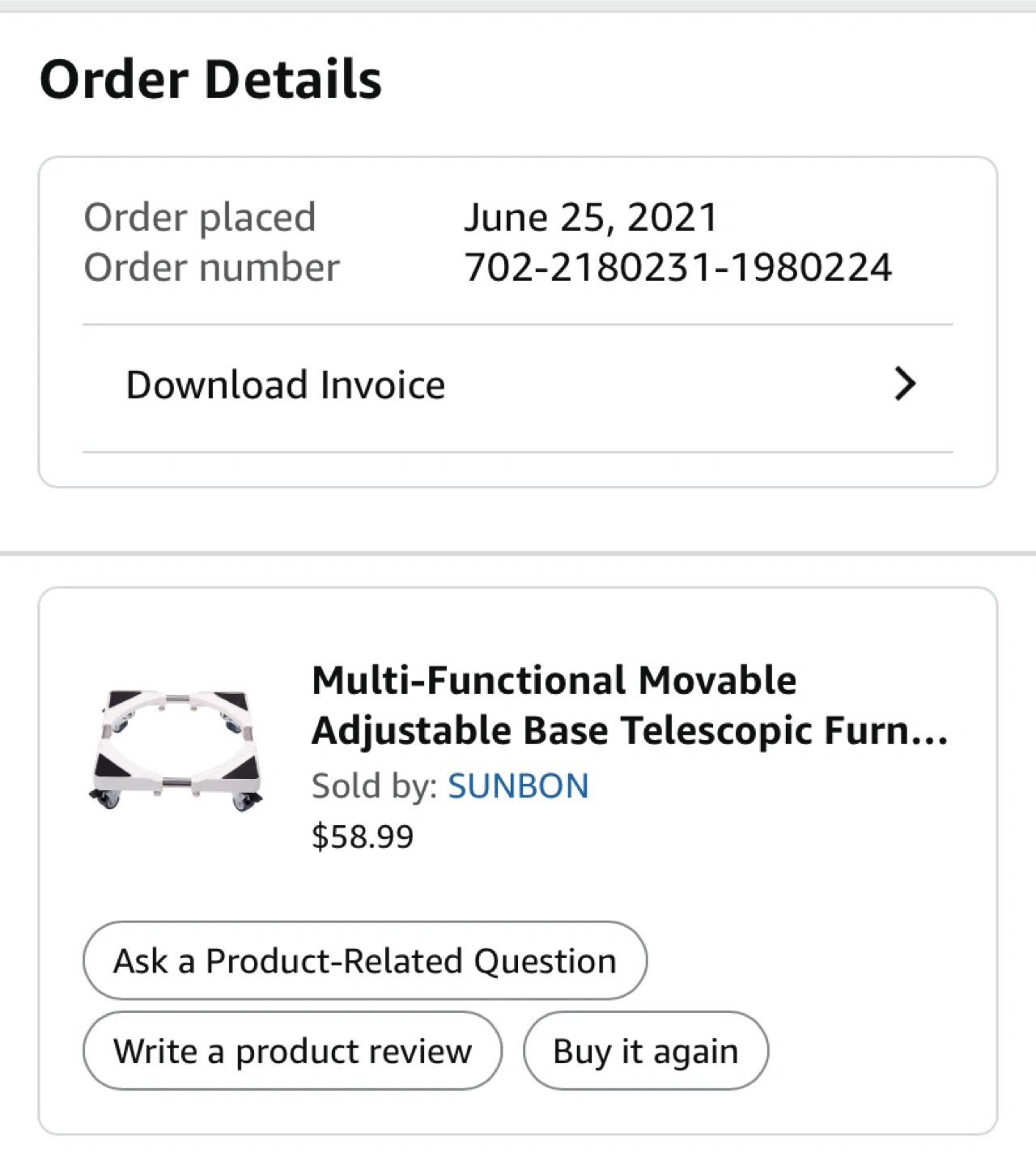 Purchased for Panda portable washer for easy moving. Purchased at Amazon for $58.99 plus tax, currently this item is not available there. Assembled, never used, as Panda portable washer is posted for selling.