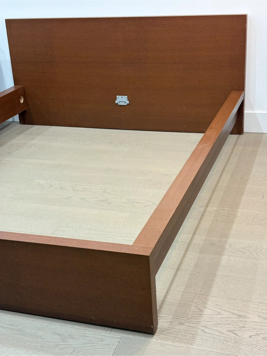 Selling a queen-size bed frame in good condition. It's a sturdy frame and will be disassembled for easy transport. All the necessary hardware is included!