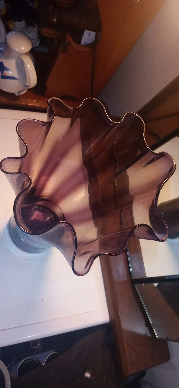 Here's a lovely purple decorative large table vase! It stands about 17 inches tall and would look great in any room. Vintage from Italy. Perfect condition. Ruffle top.