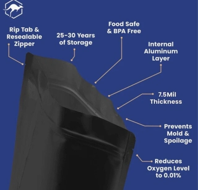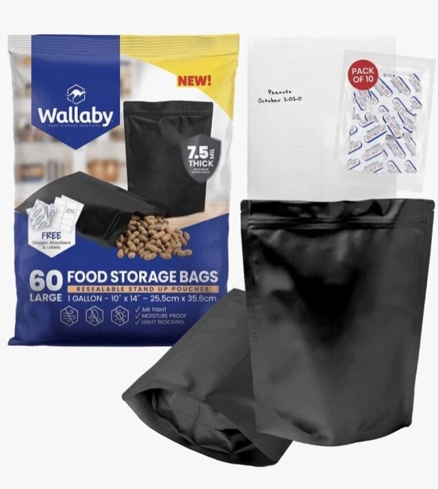 Keep your pantry organized and your food fresh with these Wallaby Food Storage Bags! These bags are new and are designed to keep food fresh for long-term storage. Each bag is 1 gallon in size (10" x 14") and is 7.5mil thick, airtight, moisture proof and light blocking. Specifications: * 60 bags per pack * Resealable stand up pouches * Includes oxygen absorbers and labels * Food Safe & BPA Free * Rip Tab & Resealable Zipper * Internal Aluminum Layer With similar food storage bags selling for $40 - $60 on Kijiji, I'm offering these at a competitive price. If the ad is up, they're still available.