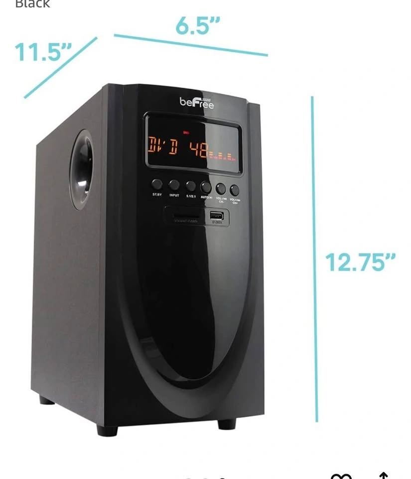 New open box beFree Sound 5.1 channel surround sound system with Bluetooth, USB, and FM. Box has some damage but the product inside is new and unused. Perfect for movies, gaming, music, or enhancing your living room audio experience! Features include a remote, deep bass subwoofer, and clear satellite speakers. Let me know if you're interested!