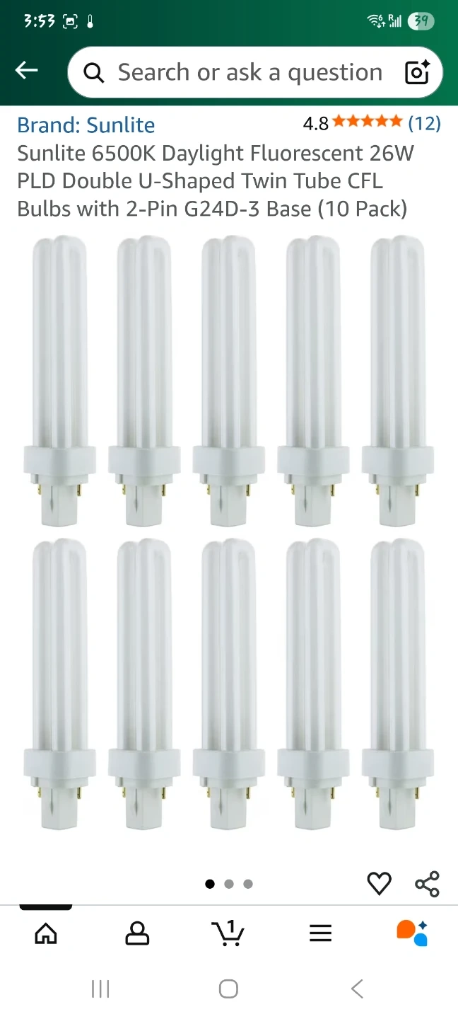 Selling a Sunlite 6500K Daylight Fluorescent 26W PLD Double U-Shaped Twin Tube CFL Bulb. It has a 2-Pin G24D-3 Base. Location: Taunton and Townline Check out my other listings