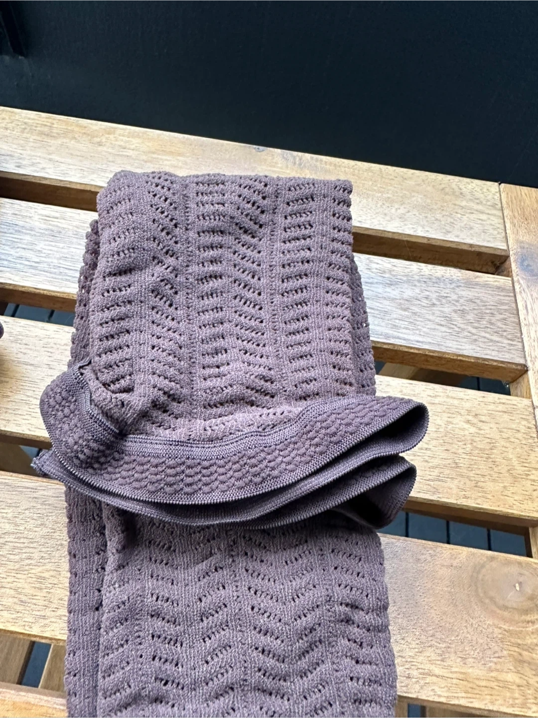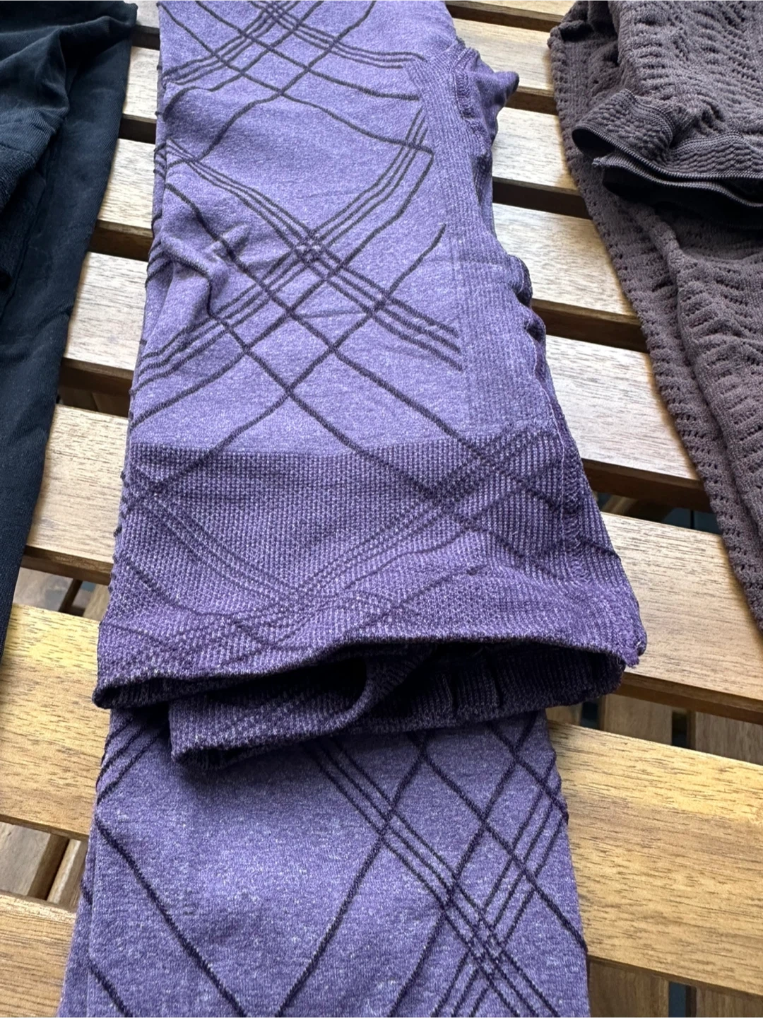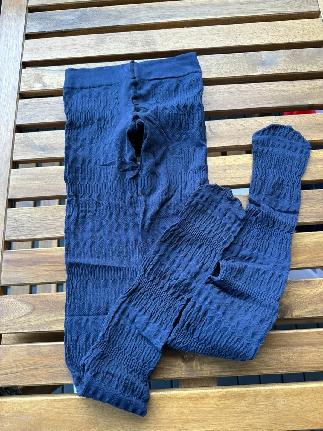 No brand and no sizing listed. However not low quality Tights. My partner said the set of three would be classified as small + small/medium and the last one pictured a medium/Large + Large.