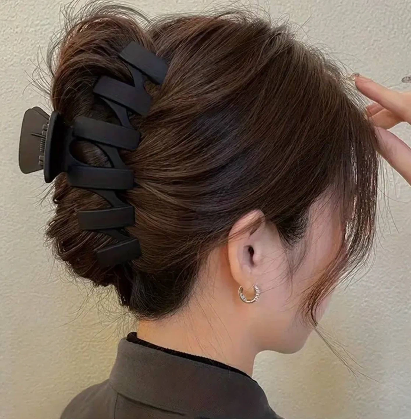 A set of 11 hair claw clips in black and brown colours. Includes various shapes and sizes.