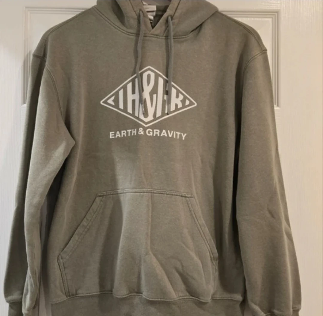Selling a Earth & Gravity hoodie in a size small. It's in good condition, with a bit of fading on the front.
