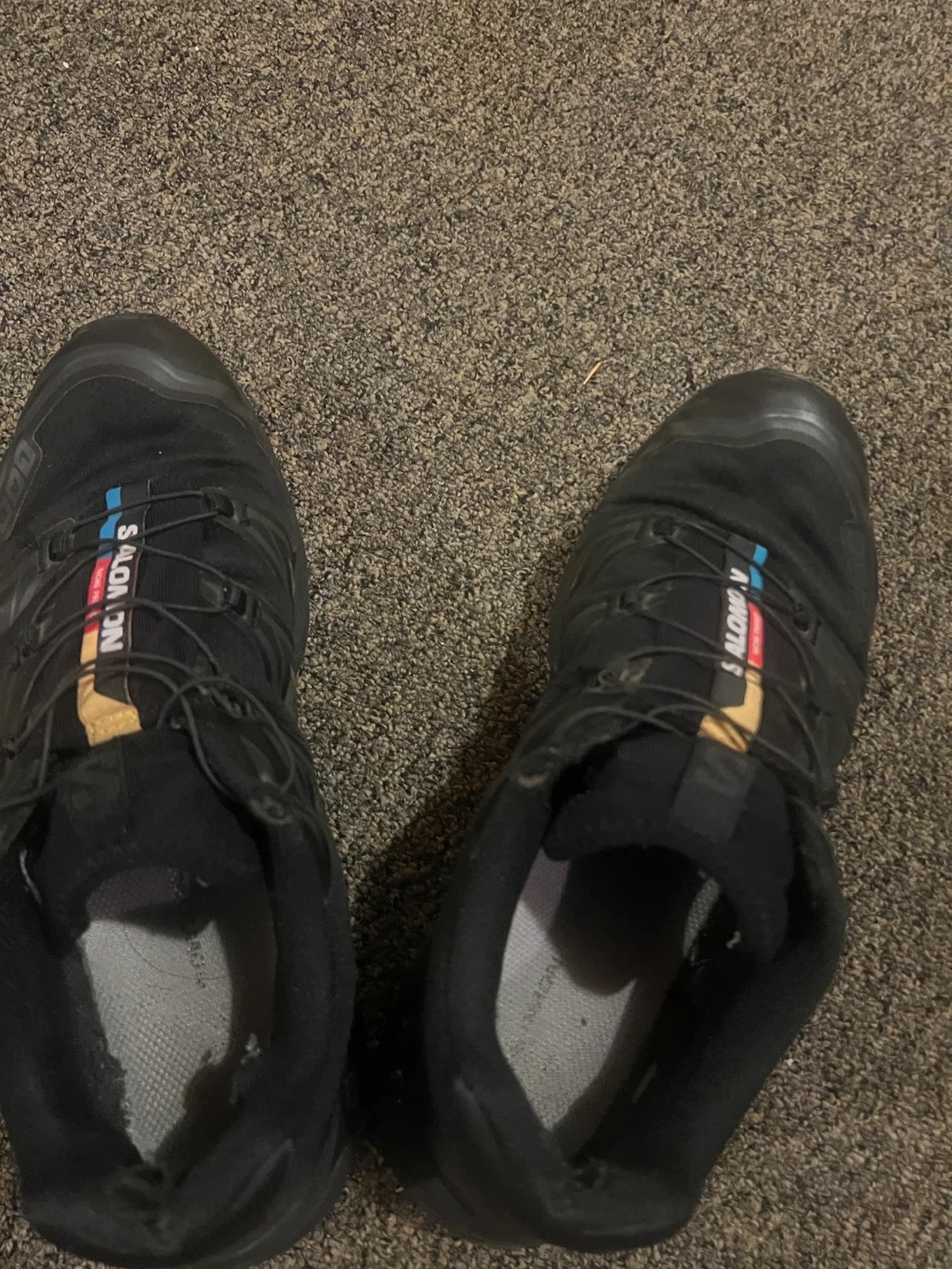 Given a pair of Salomon Speedcross 5 trail running shoes in women's size 10 (US). They're black and have the Salomon logo on the side. Great for hitting the trails!