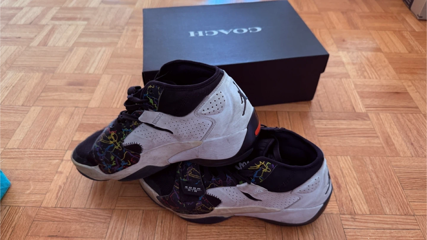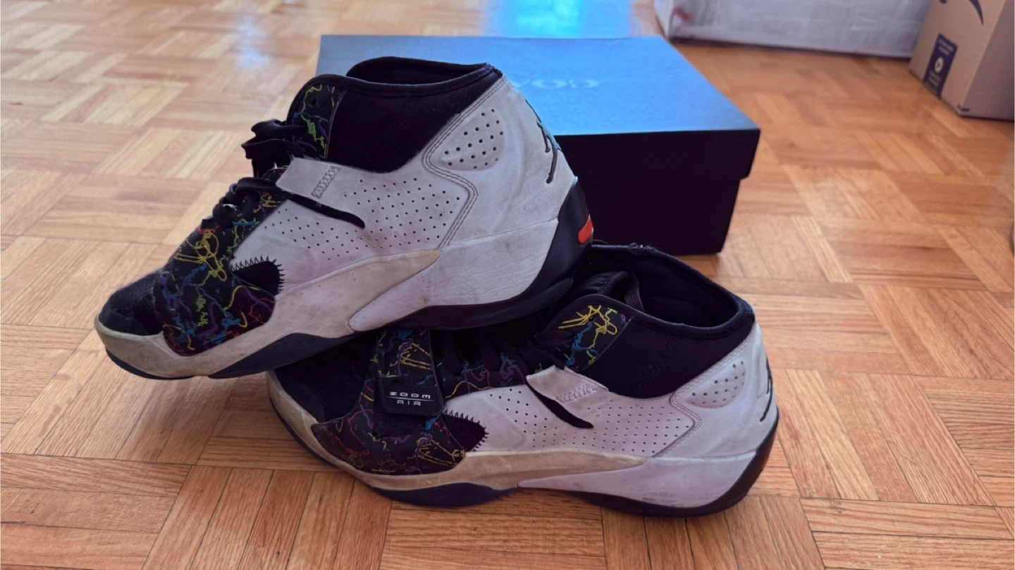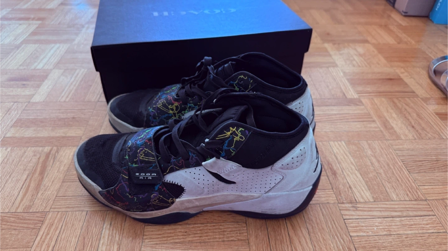 Selling a pair of Jordan Zoom 92 basketball shoes. They come with the box. These shoes have a unique design and are perfect for basketball or casual wear. Check out the photos for the condition!