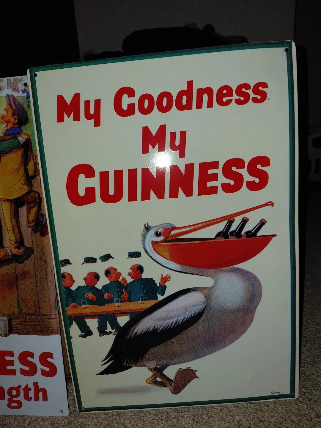 Buy & SellGuinness Advertising SignsGuinness Advertising Signs$50Two vintage Guinness advertising signs! One features a pelican and the other features people in a pub. Great for a bar or home decor!WHERE TO MEETCheck LocationView MapSELLERverifiedDougCochrane620 reviews0 chats·0 favorites·1 views