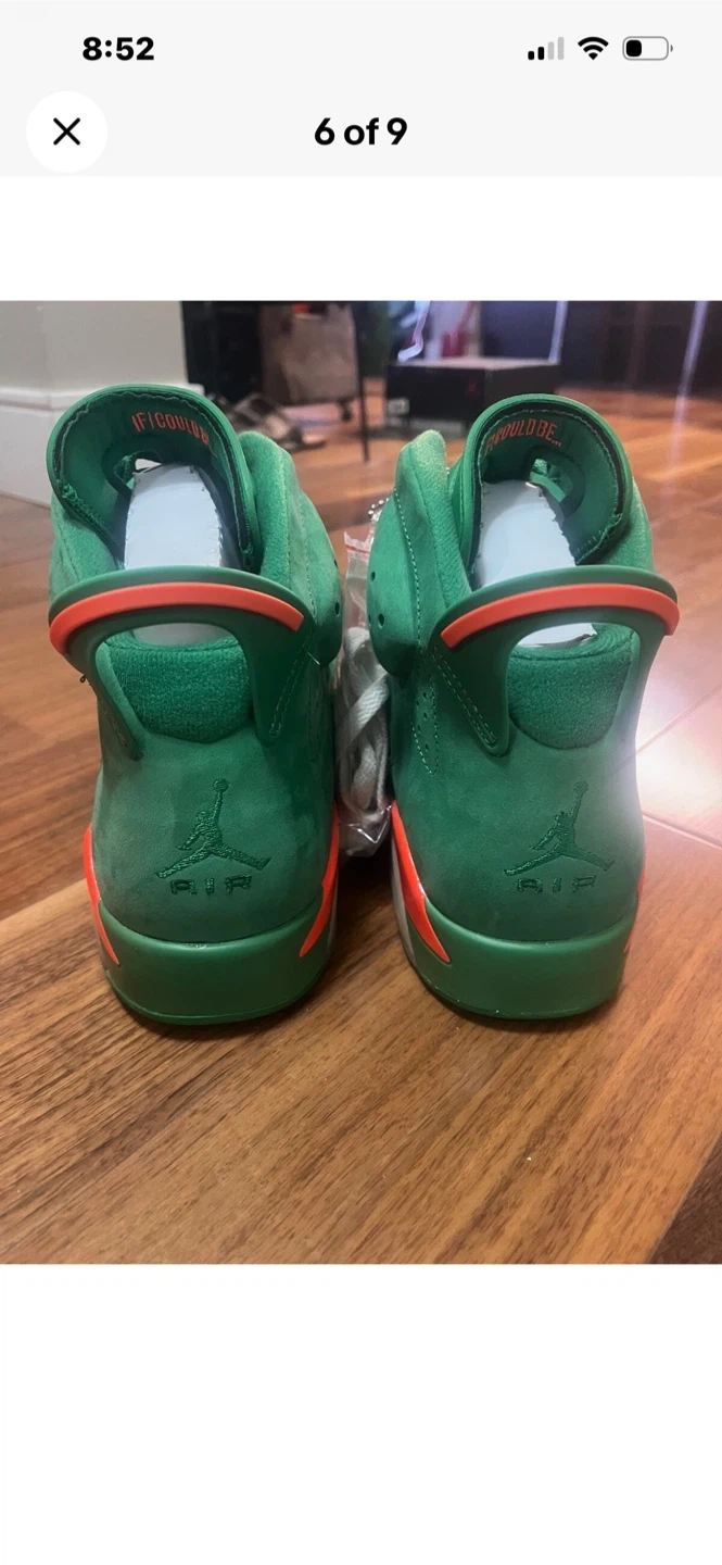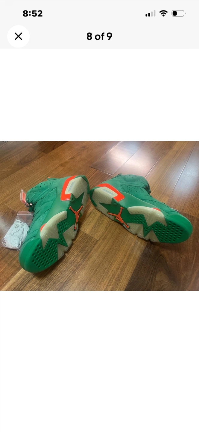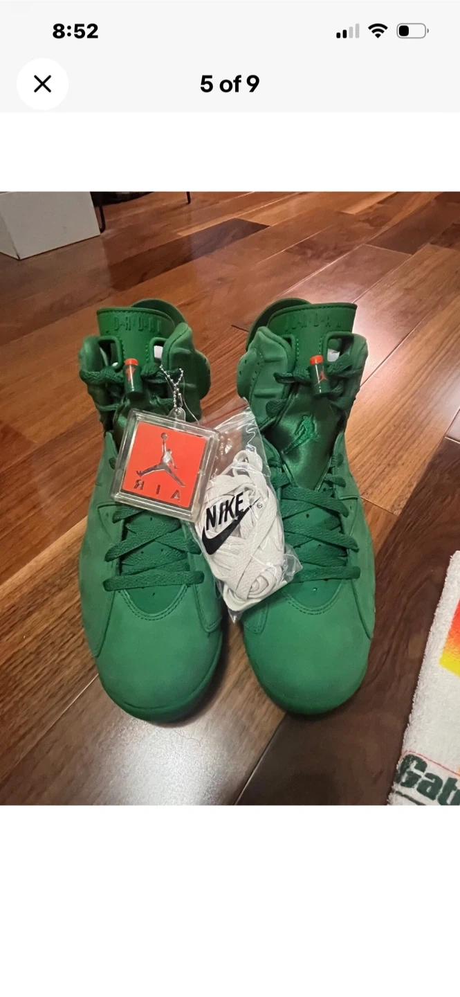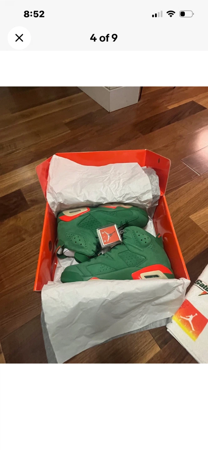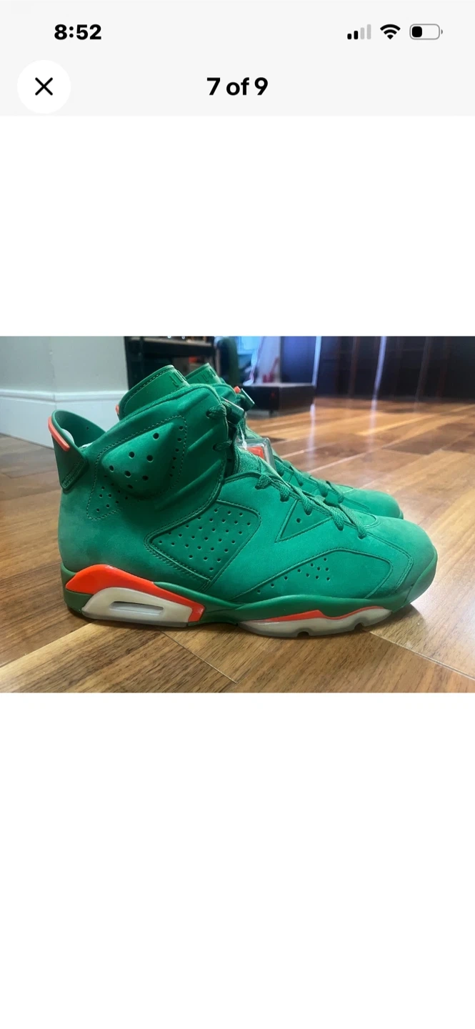 Selling a pair of Nike Air Jordan 6 Gatorade in green, size 10.5. Comes with the original box and accessories, including a Gatorade towel and extra laces. The shoes are in great condition!