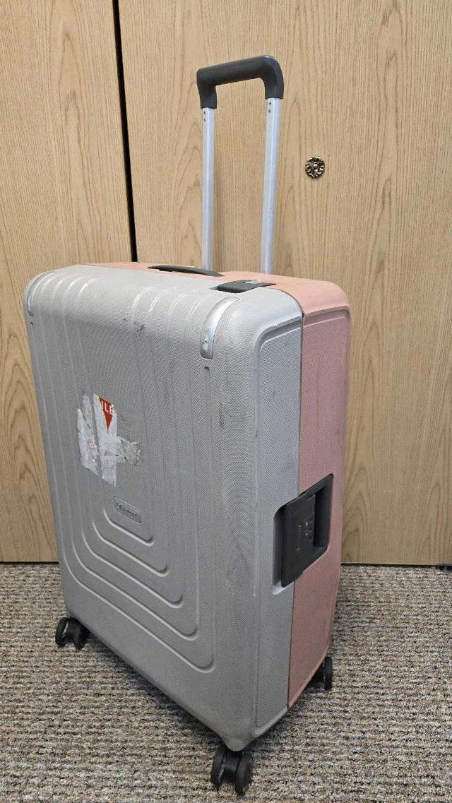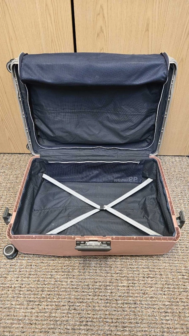 Eminent brand luggage in gray and pink. It measures 20" x 12" x 30" (L x W x H-standing on wheels). It's a 4 wheeler with a 3-digit coded lock and a TSA (007) key hole access point. Keyless locking, side latches. The exterior is in fair condition with cosmetic wear from air travel, but no breaks in the shell. The inside is in good condition with no fabric tears or unusual odors. Available for pickup near Cambie Road & No. 5 Road in Richmond.
