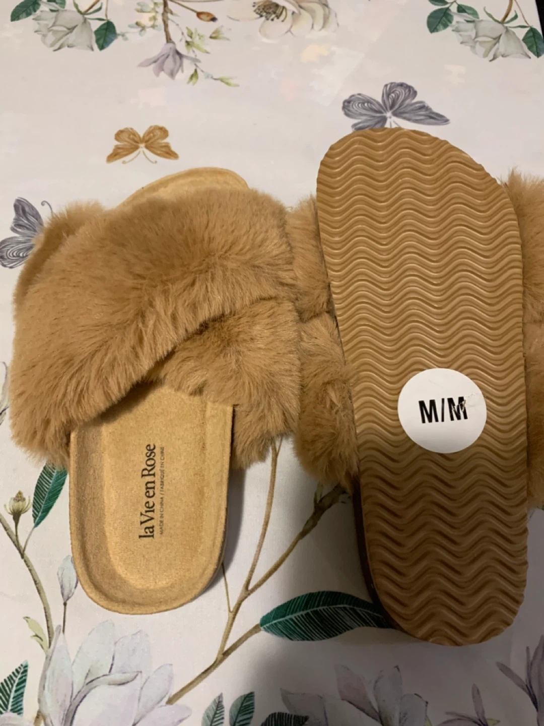 La Vie en Rose Fuzzy Slippers Size L/G