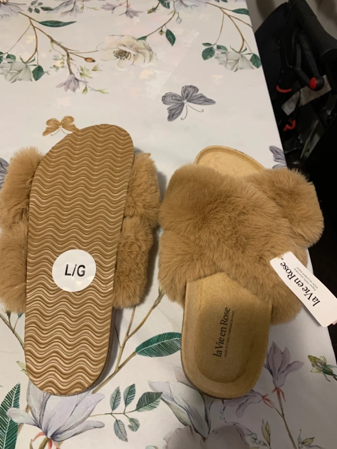 La Vie en Rose Fuzzy Slippers Size L/G