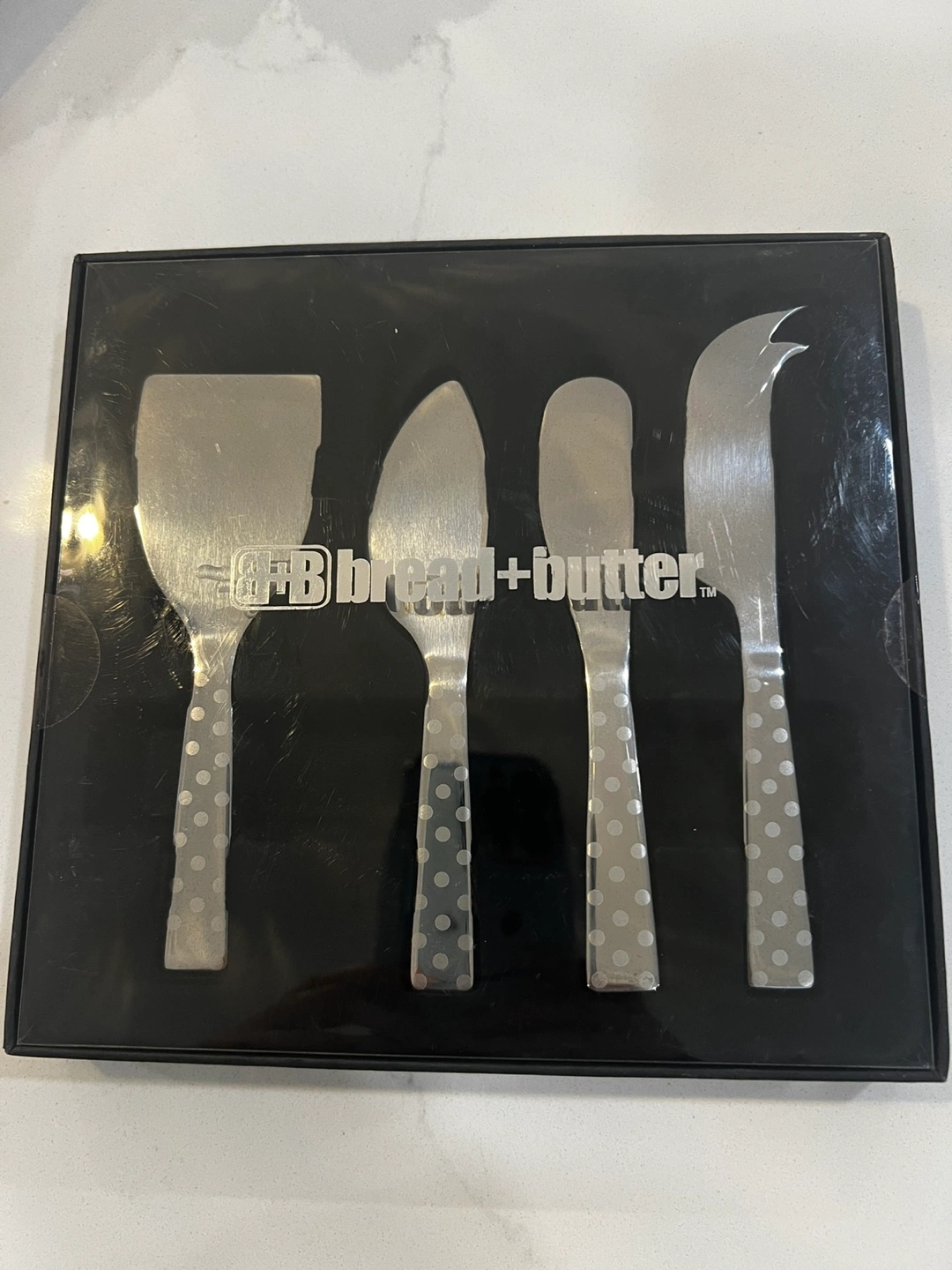 Selling a brand new Bread+Butter 4-piece cheese knife set! The knives are made of quality stainless steel and feature a contemporary design. The set comes in its original box.