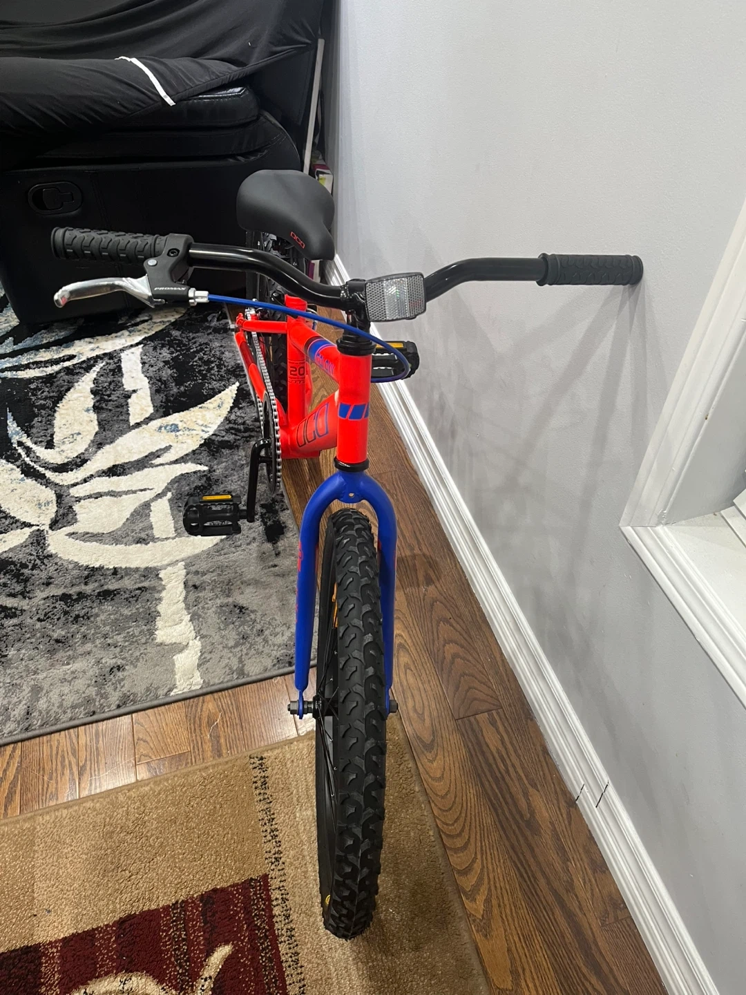 Selling a DJO Galaxy kids bike with 20-inch wheels! The frame is a vibrant red with blue accents. It's in good condition and ready for some new adventures. Perfect for kids learning to ride or those who need a reliable bike for getting around the neighbourhood