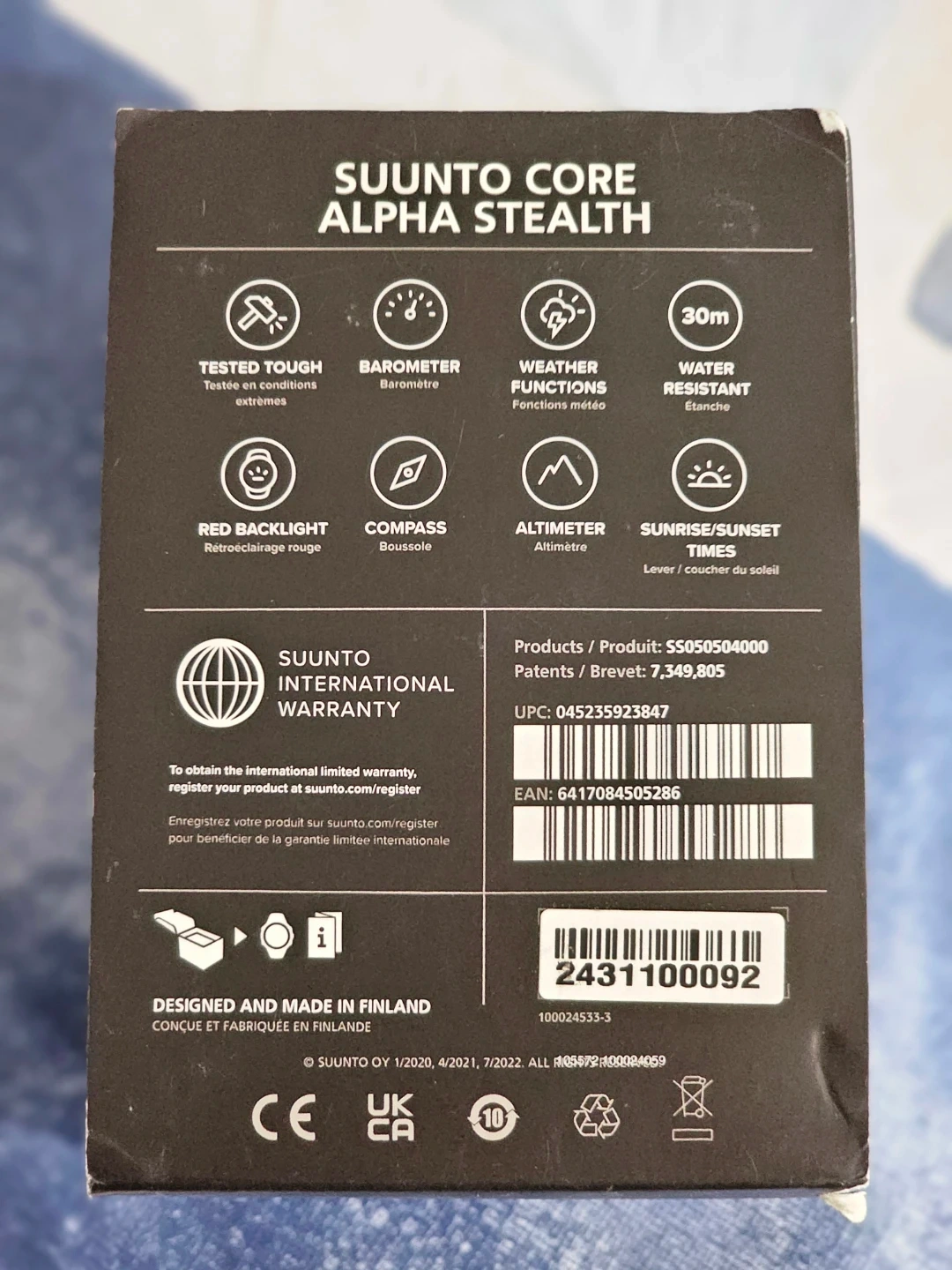 Selling a brand new Suunto Core Alpha Stealth outdoor watch, still in its original box! This watch is designed for outdoor activities and features an altimeter, barometer, and compass. Perfect for hiking, camping, and other adventures! Comes with all original components and instructions