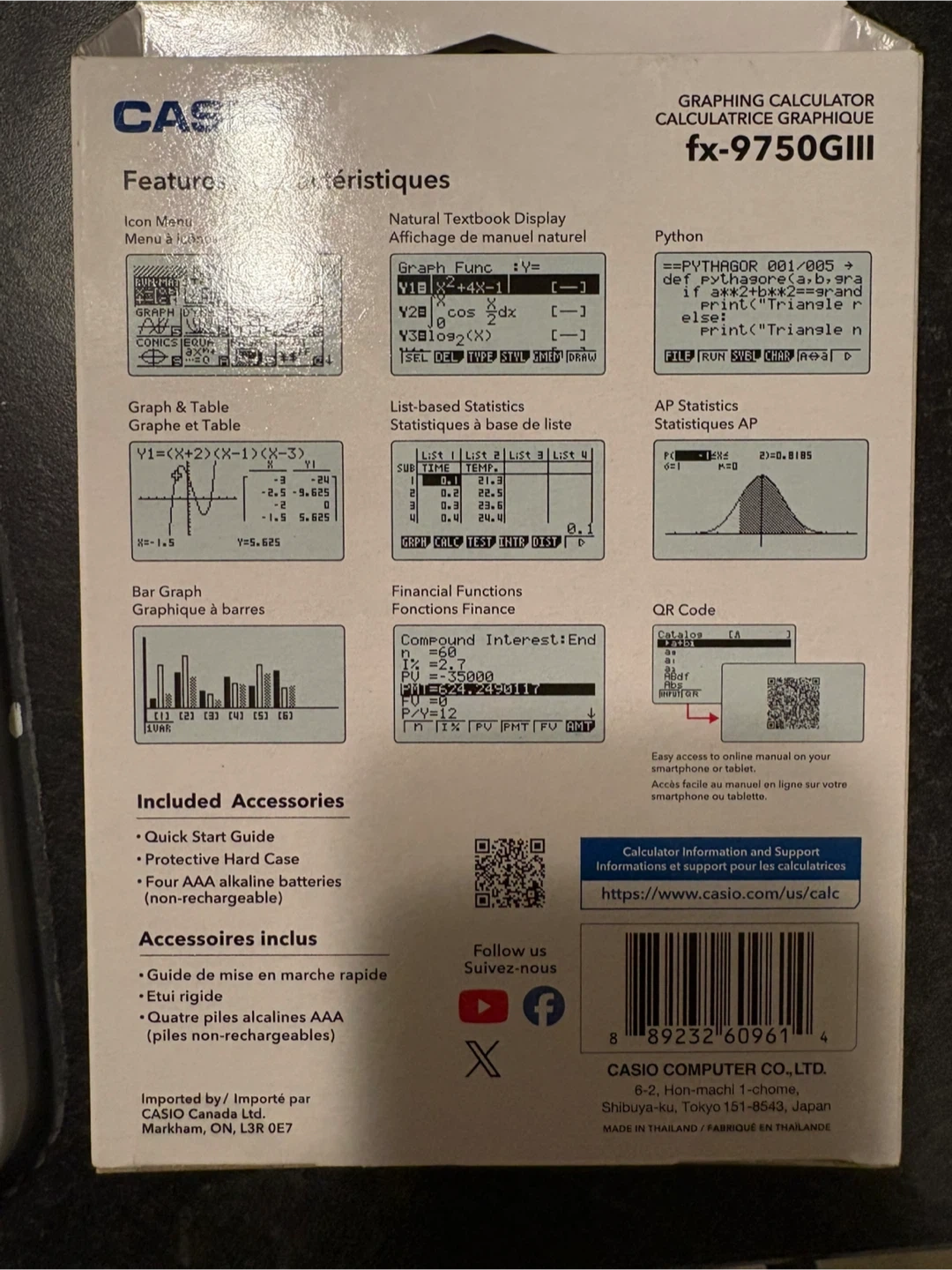 Selling a Casio fx-9750GIII USB Power Graphic 3 calculator in excellent condition! It comes with the original box and includes: