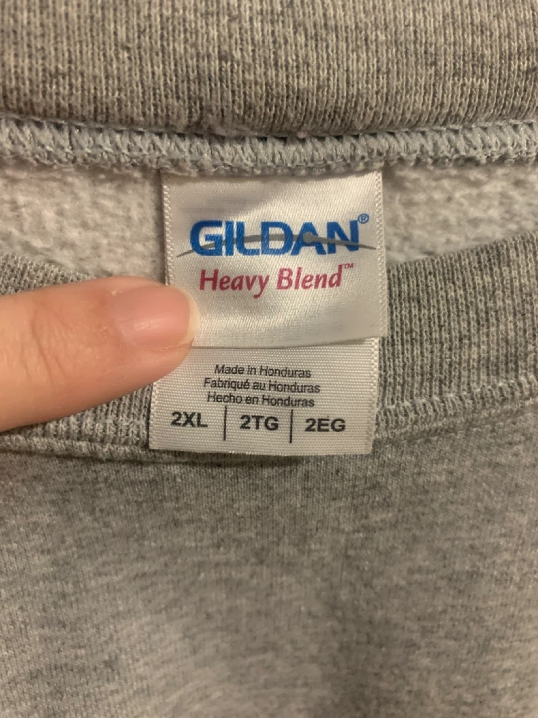 It's a grey, heavy blend in size 2XL. Perfect for staying cozy while showing your school spirit!