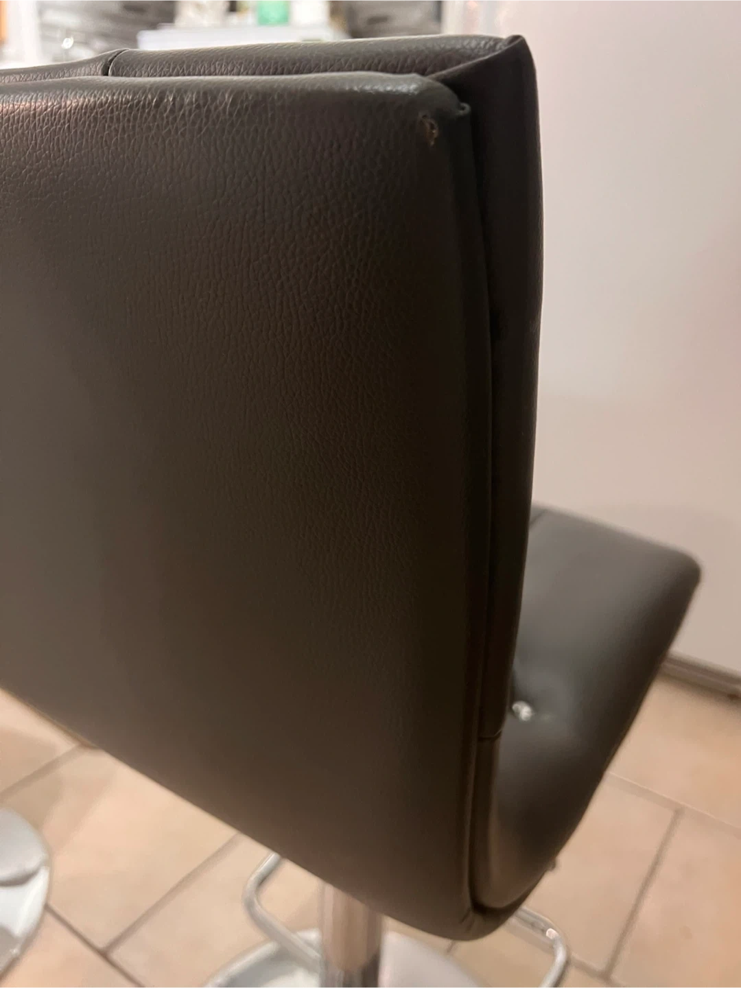 Selling a set of 2 stylish grey bar stool with a chrome base. It has a diamond-tufted back and a comfortable padded seat. Great for adding a touch of elegance to your kitchen or bar area! Price is PER CHAIR.