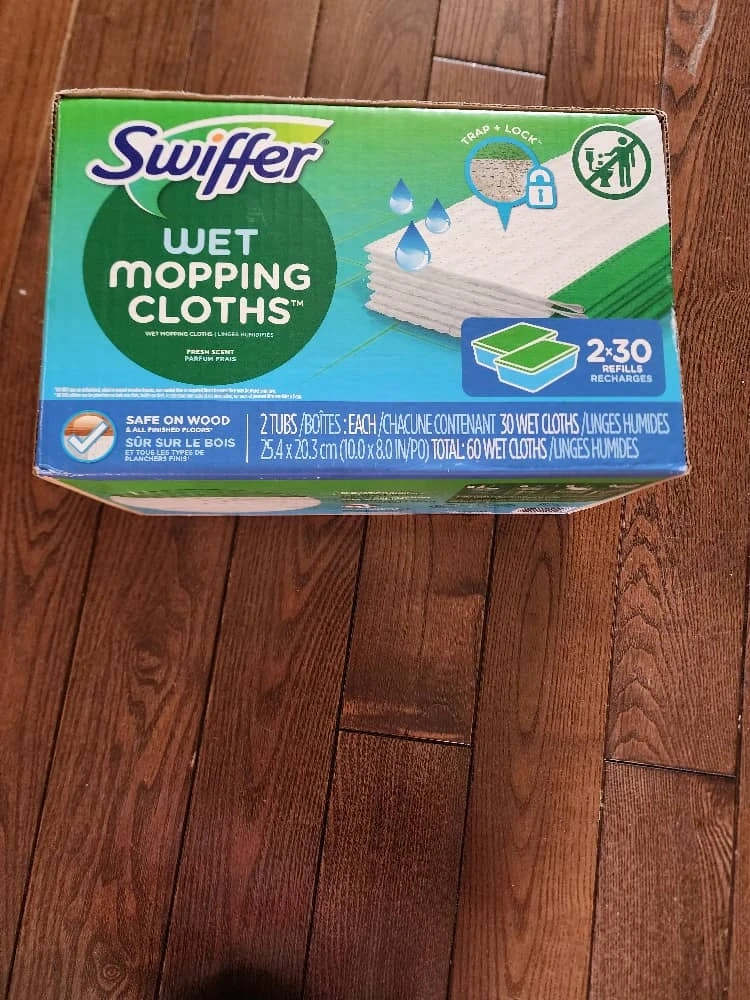 Selling a box of Swiffer Wet Mopping Cloths.
