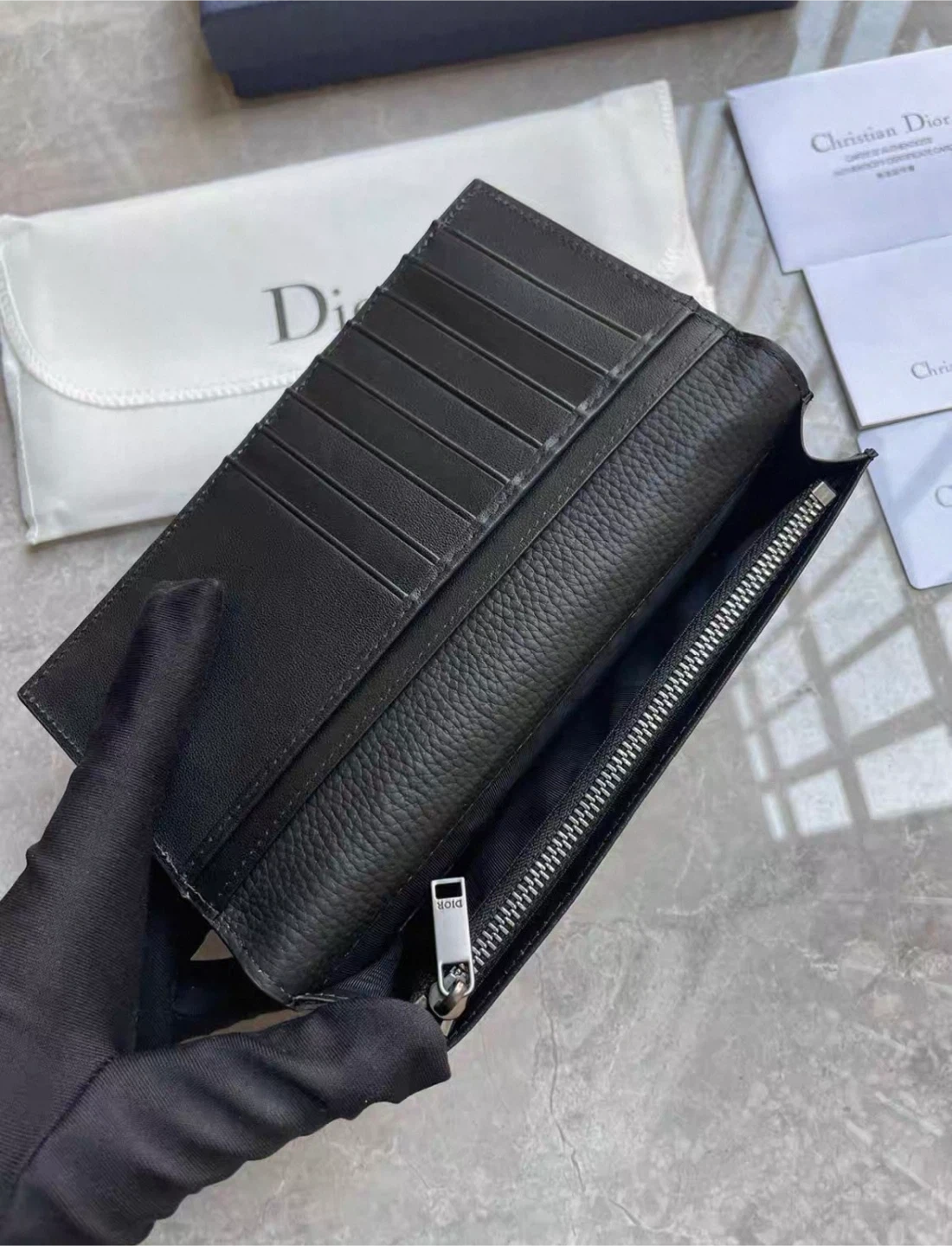 Dior Black Leather Long Wallet