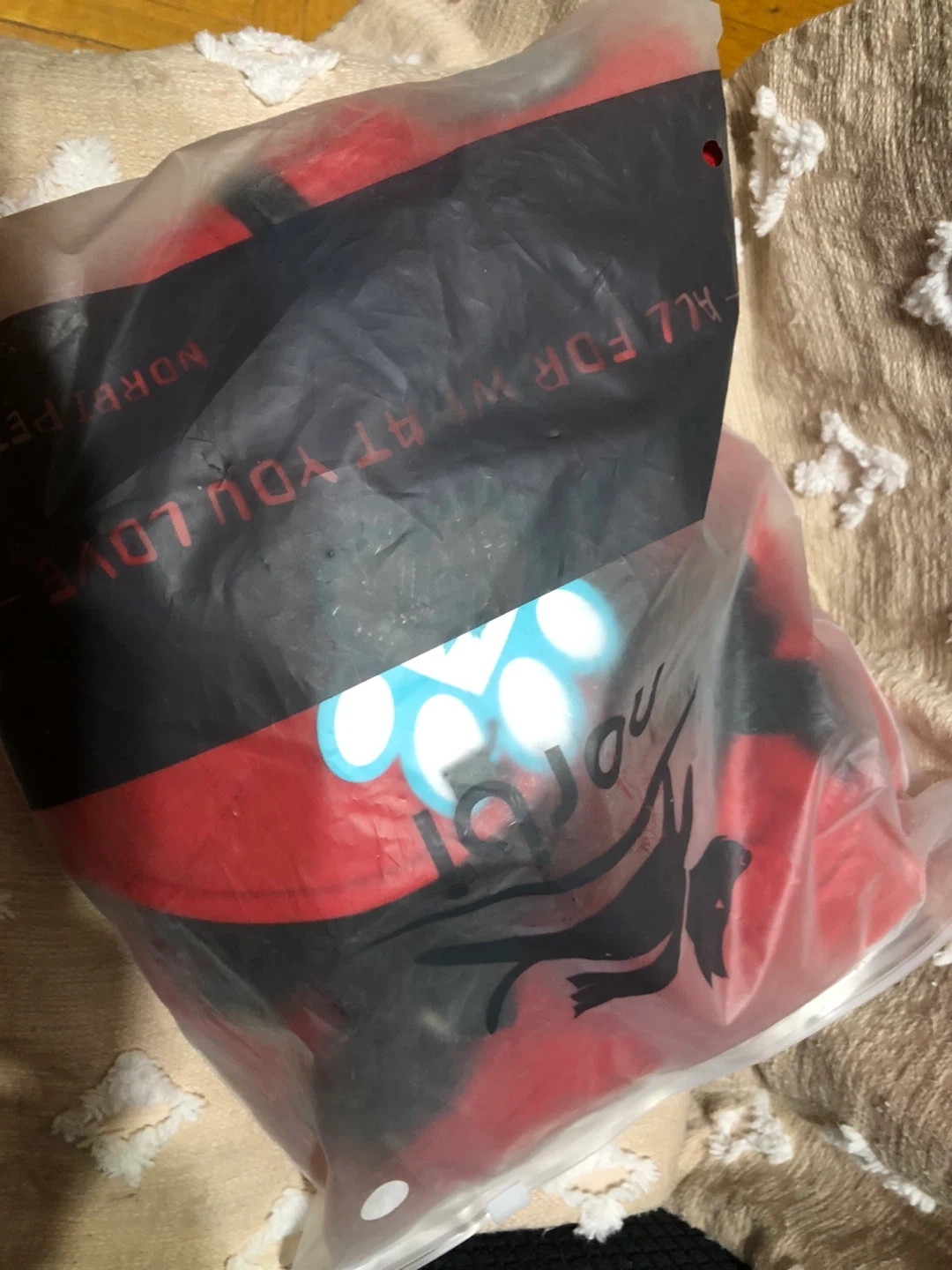 Keep your furry friend warm this winter with this NORBI pet coat! It's red and black and looks so warm and cozy for those chilly days. It's brand new and still in the original packaging.