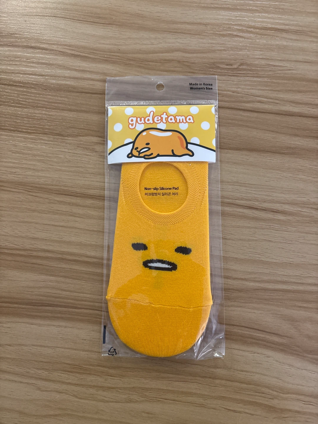 These Gudetama socks are brand new and still in their original packaging! They are women's size and feature a non-slip silicone pad.