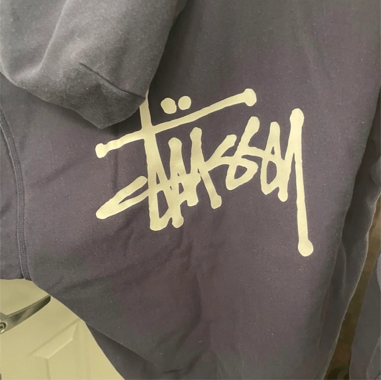 Here's a navy blue Stussy hoodie size medium in great condition! It's a classic piece that's super comfy and stylish. Perfect for adding a bit of streetwear flair to your wardrobe