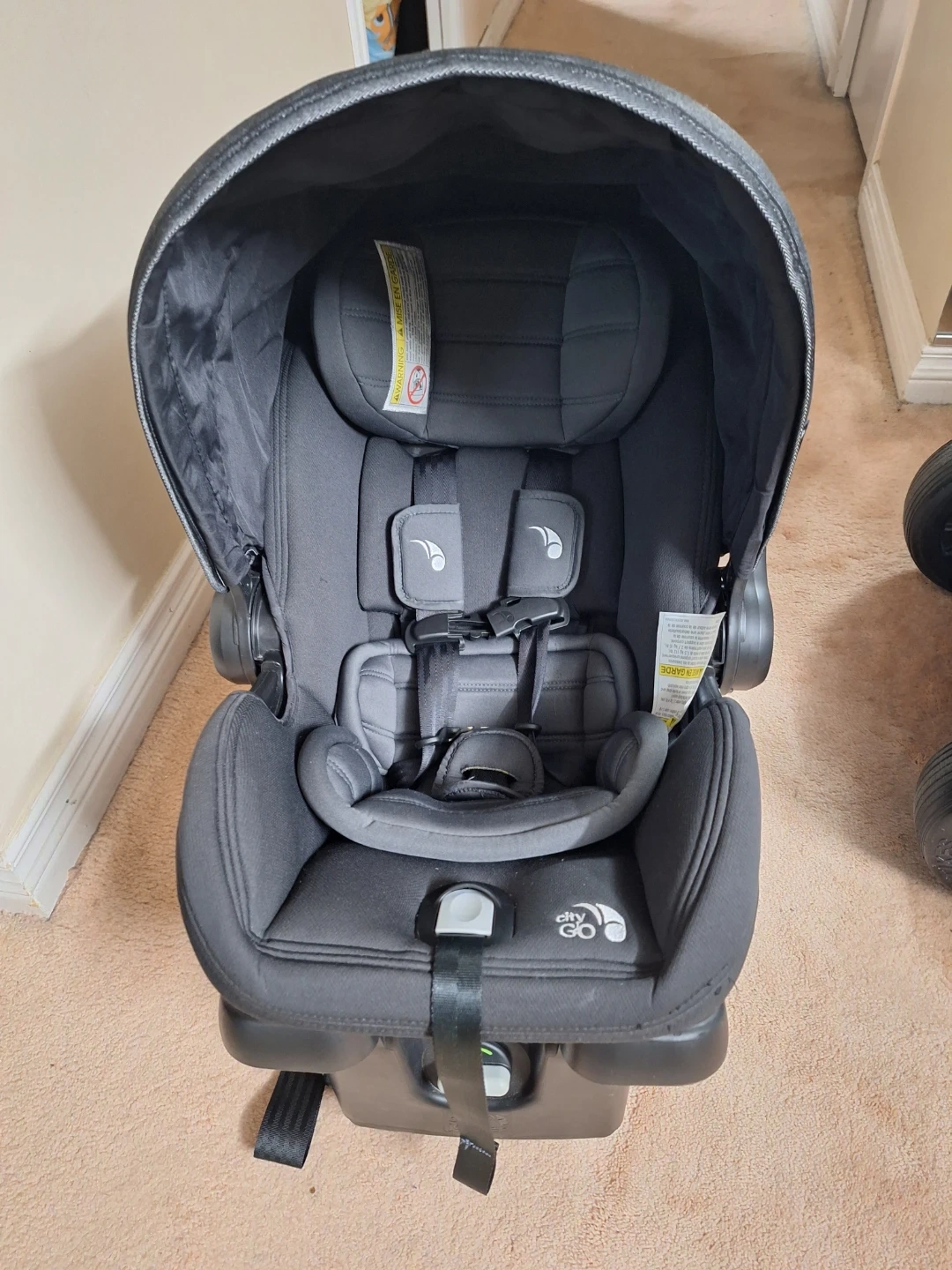 Selling baby car seat in black. It's in great condition and ready for a new little one! Perfect for keeping your baby safe and comfortable on the go