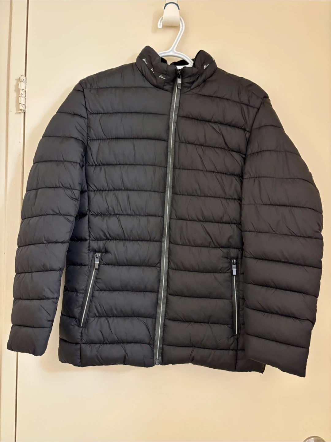 Lightweight & packable unworn black puffer coat. No size labeled but I believe it’s a men’s Large. Shoulders are about 40cm apart.