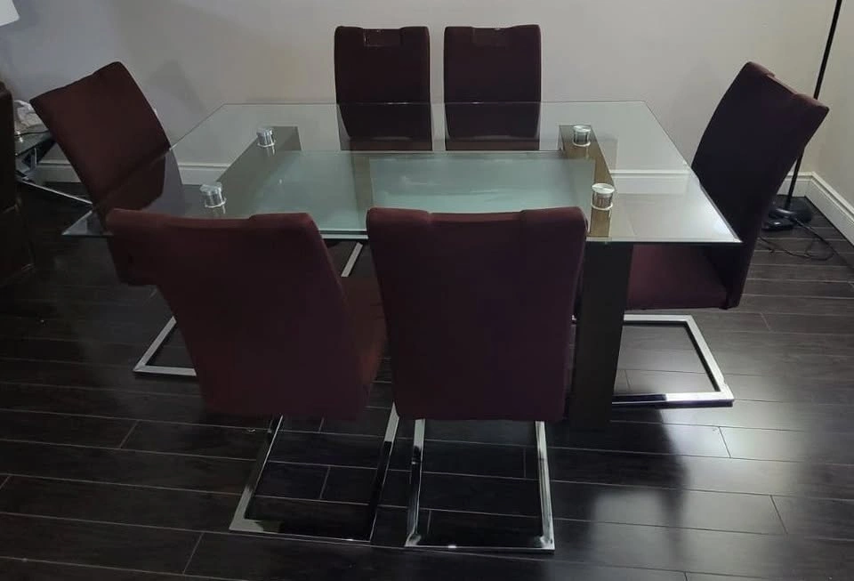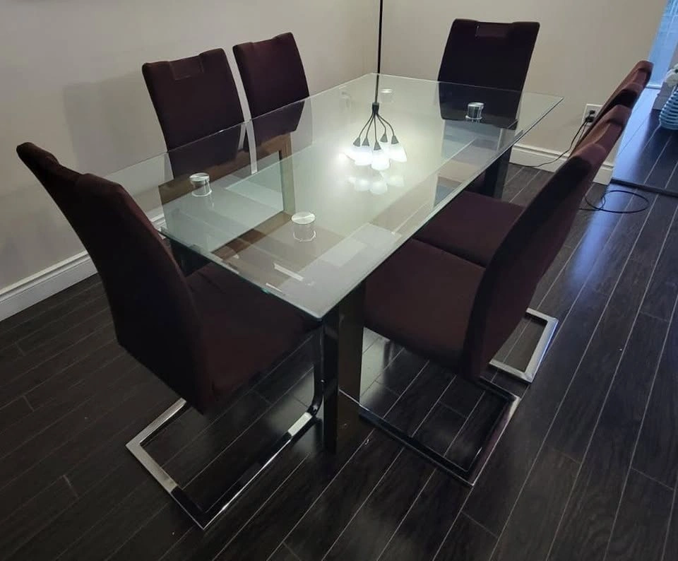 Modern Glass Dining Table Set – 6 Chairs – Excellent Condition