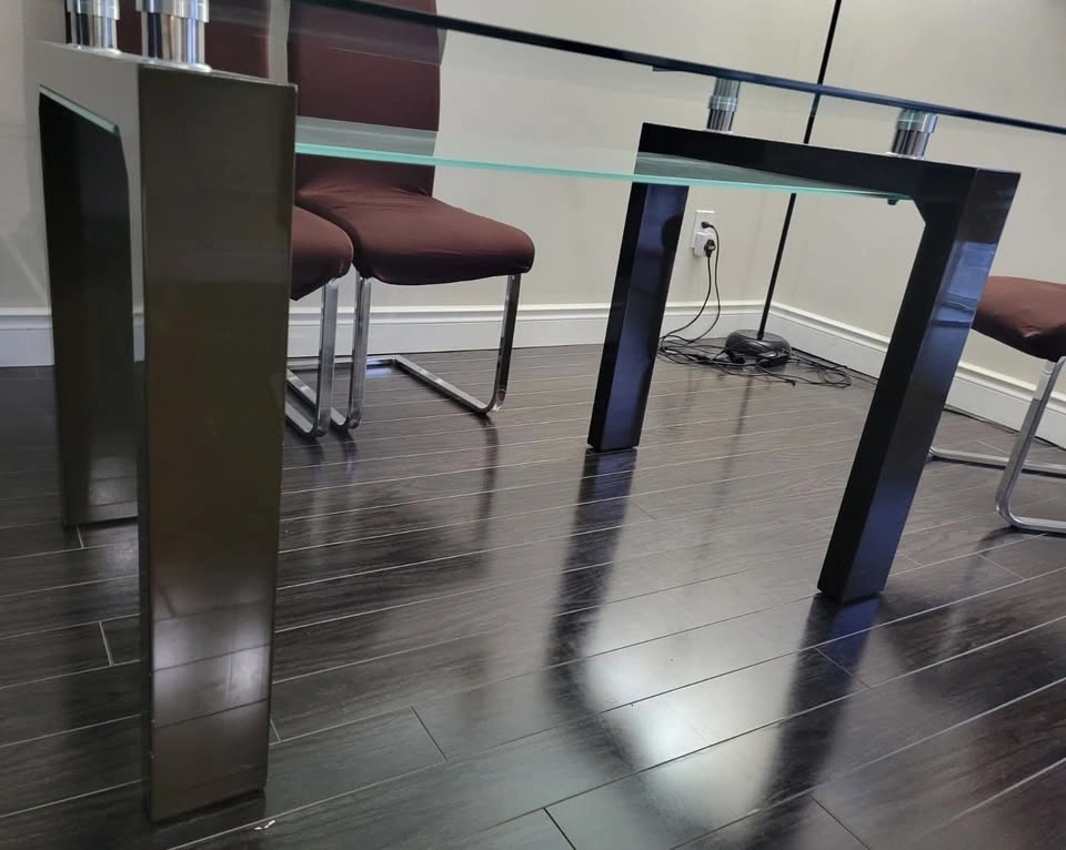 Sturdy metal legs with a sleek contemporary look. Glass is thick, premium quality, and easy to clean.