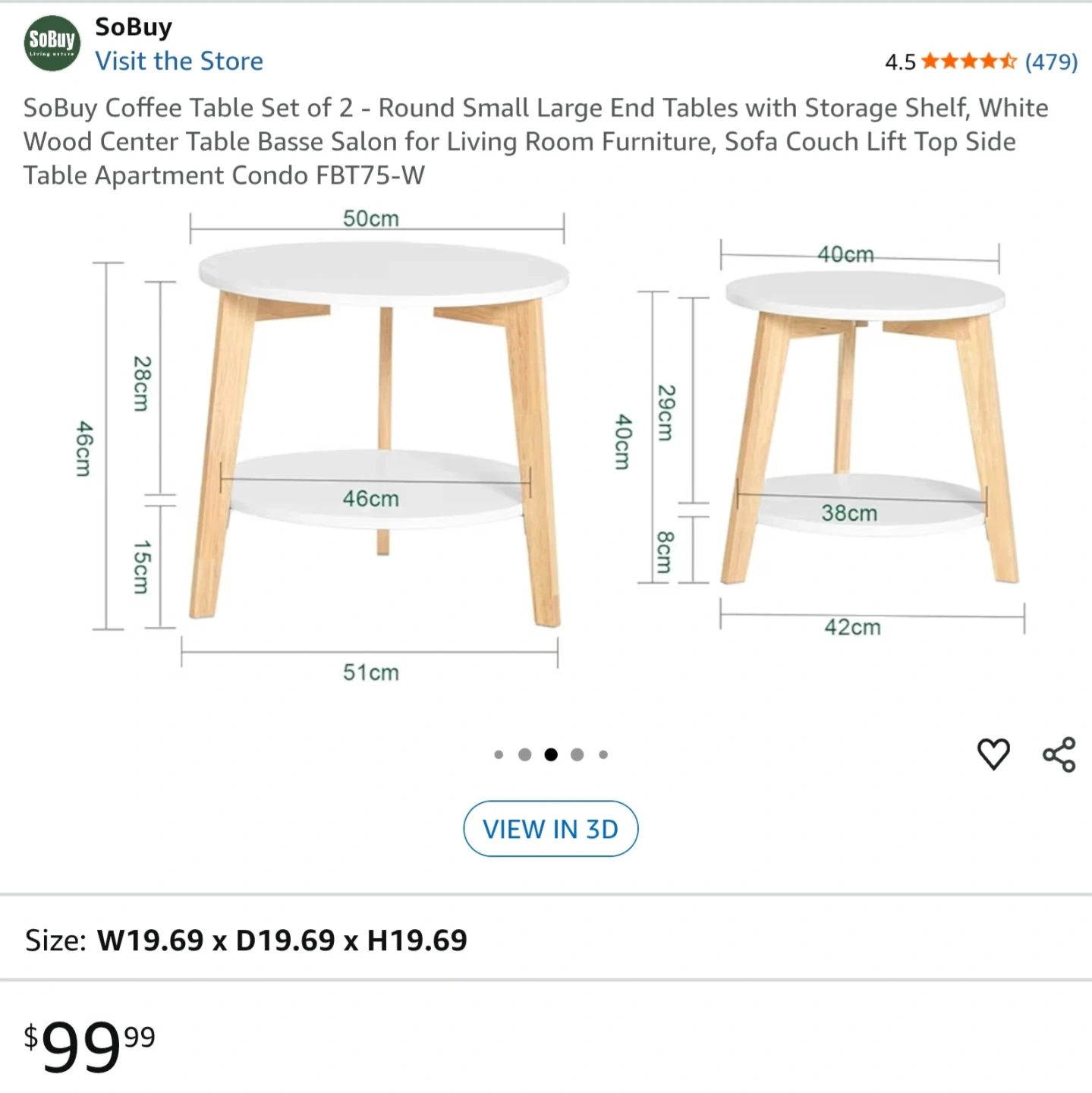 Here's a stylish white round nesting table. It's perfect for adding a modern touch to your living space. It's in great condition and ready for a new home!