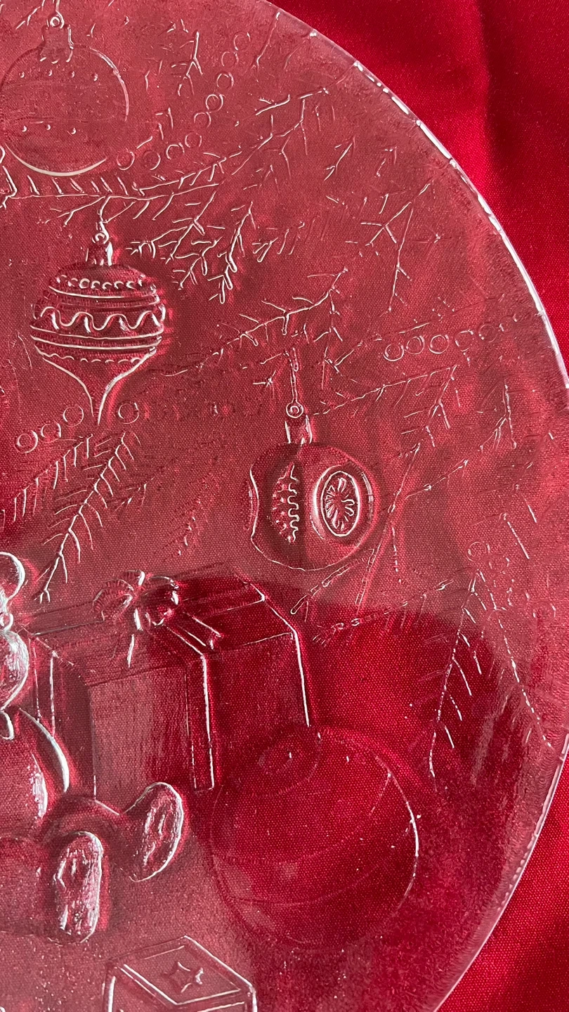 Beautiful 1980s Christmas themed platter from Libbey Glass.