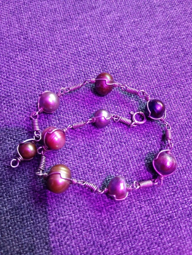 Pearl bracelet. The sterling silver has been tested and has the right markings. I can't guarantee the pearls are real, as I don't have a test for that, but they seem real and I know they're not plastic. Price is firm.