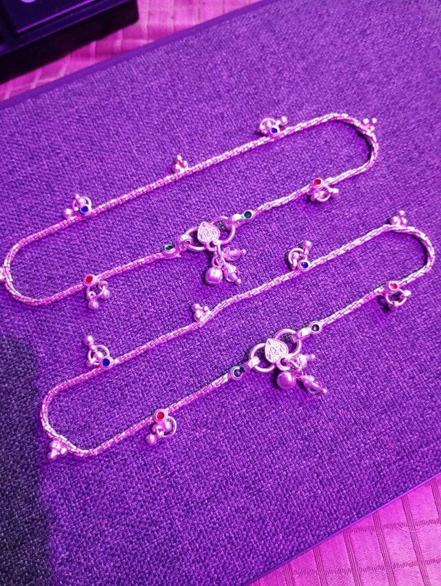 Pure silver anklets. I found lots of them online. They seem to be for belly dancing as well as traditional use. I can't find markings on it, but they both passed an acid test. Price is firm.