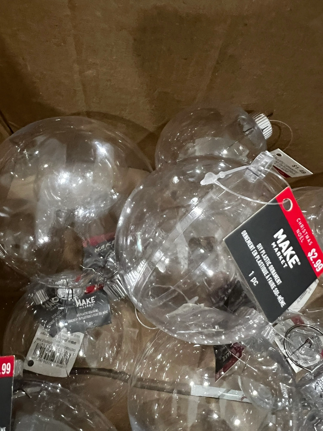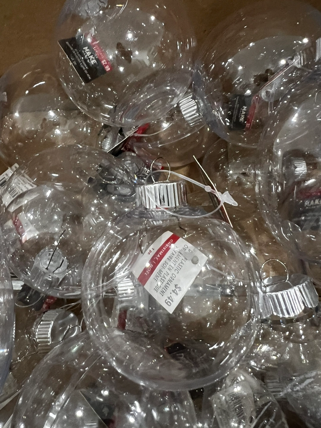 I'm selling 40 DIY plastic ornaments and a box of 8 glass clear ornaments.