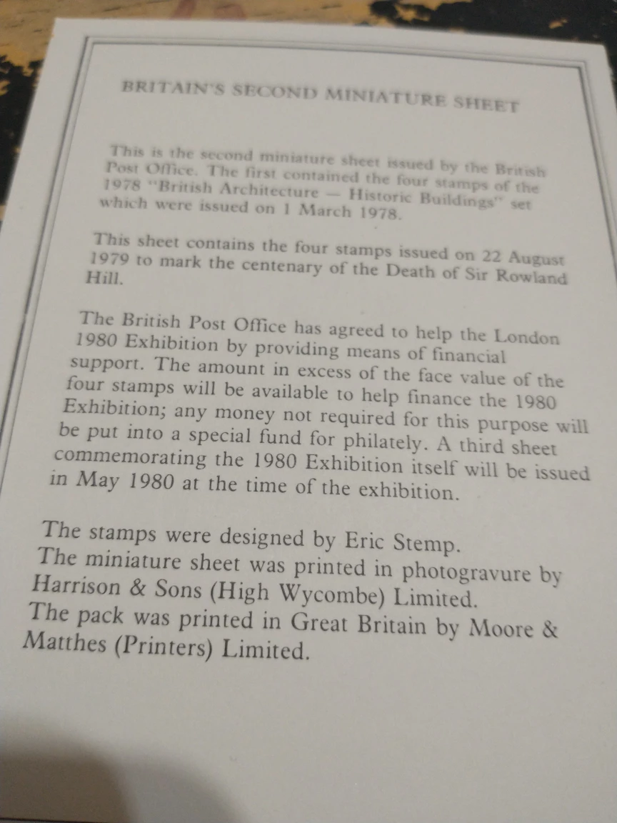 London 1980 MNH International stamp exhibition souvenir sheet in envelope 11. Two available.